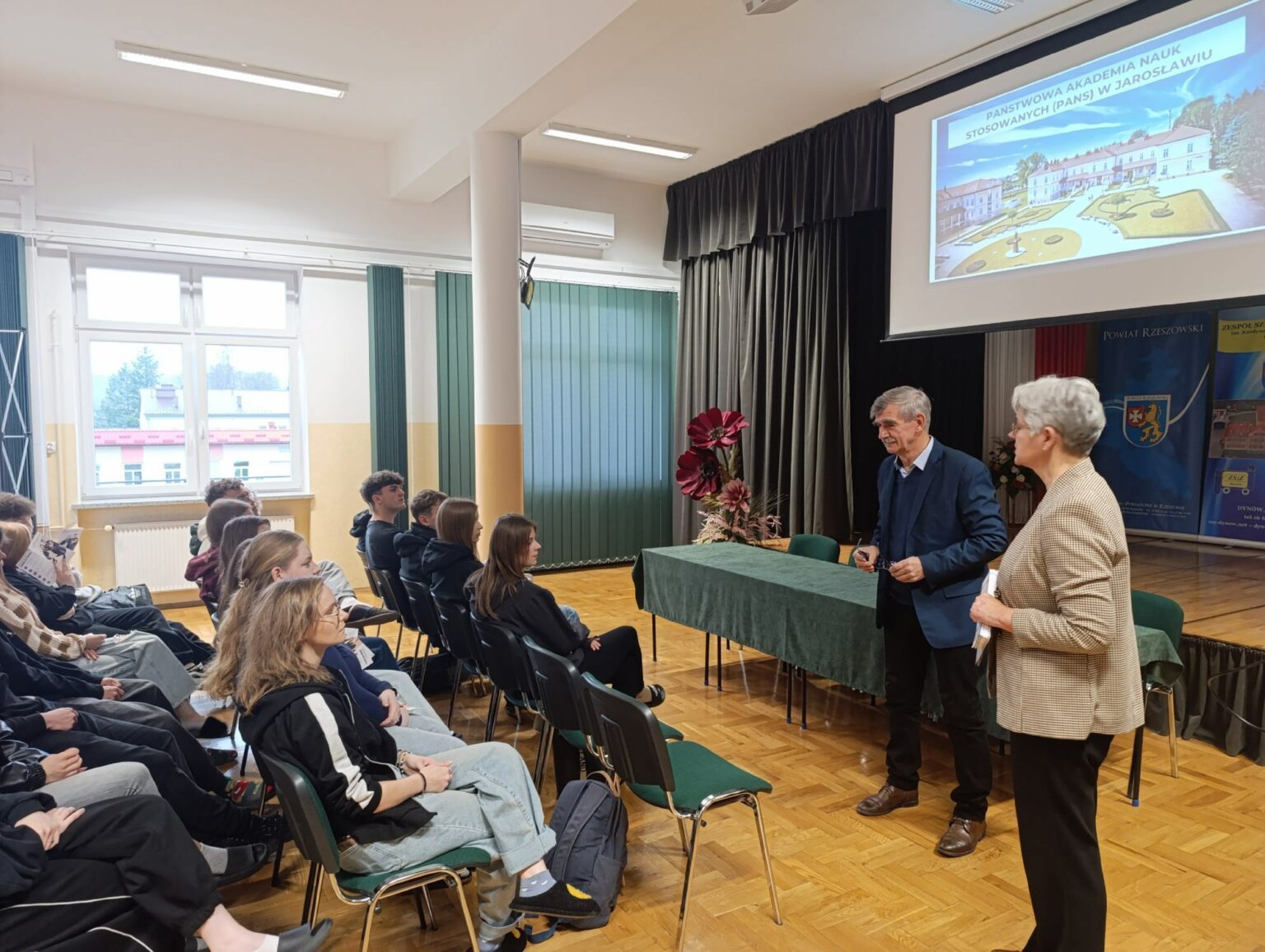 Spotkanie uczniów z przedstawicielem Państwowej Akademii Nauk Stosowanych w Jarosławiu.