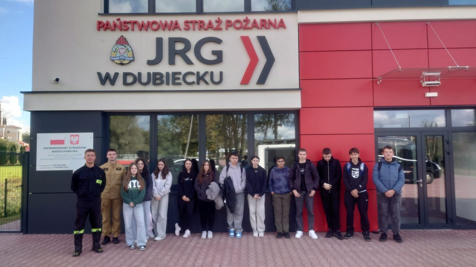 W dniu 7 października 2025 r., pod opieką nauczyciela Piotra Marcinka, odwiedzili Jednostkę Ratowniczo-Gaśniczą w Dubiecku. Podczas wizyty młodzież zapoznała się z wyposażeniem samochodów ratowniczo-gaśniczych oraz sprzętem wykorzystywanym
