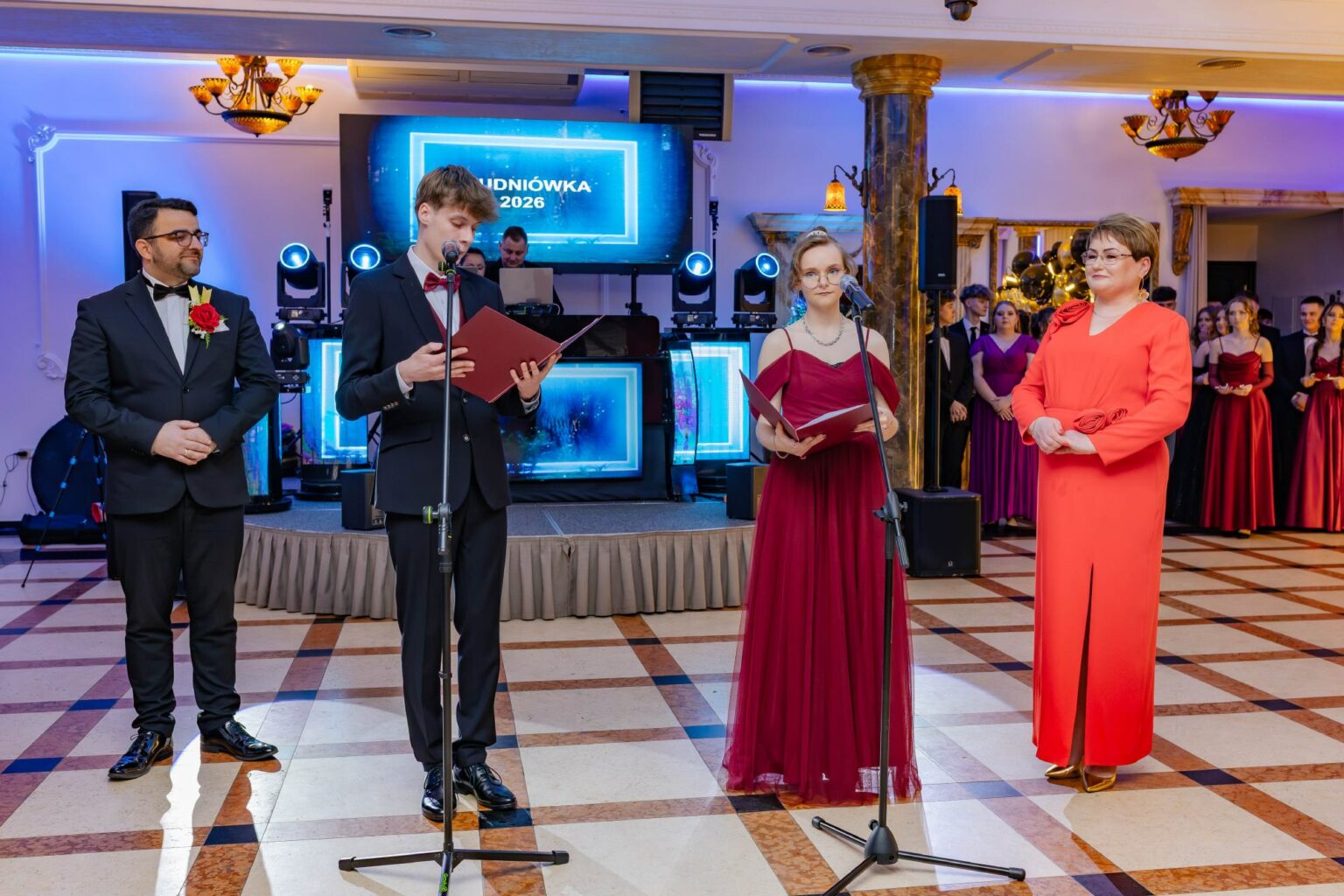 14 lutego 2026 r. w Restauracji „Aleksandria” w Dynowie odbył się bal studniówkowy uczniów klas maturalnych. Uroczystość rozpoczęli przedstawiciele młodzieży witając przybyłych gości: Starostę Rzeszowskiego – Pana dra