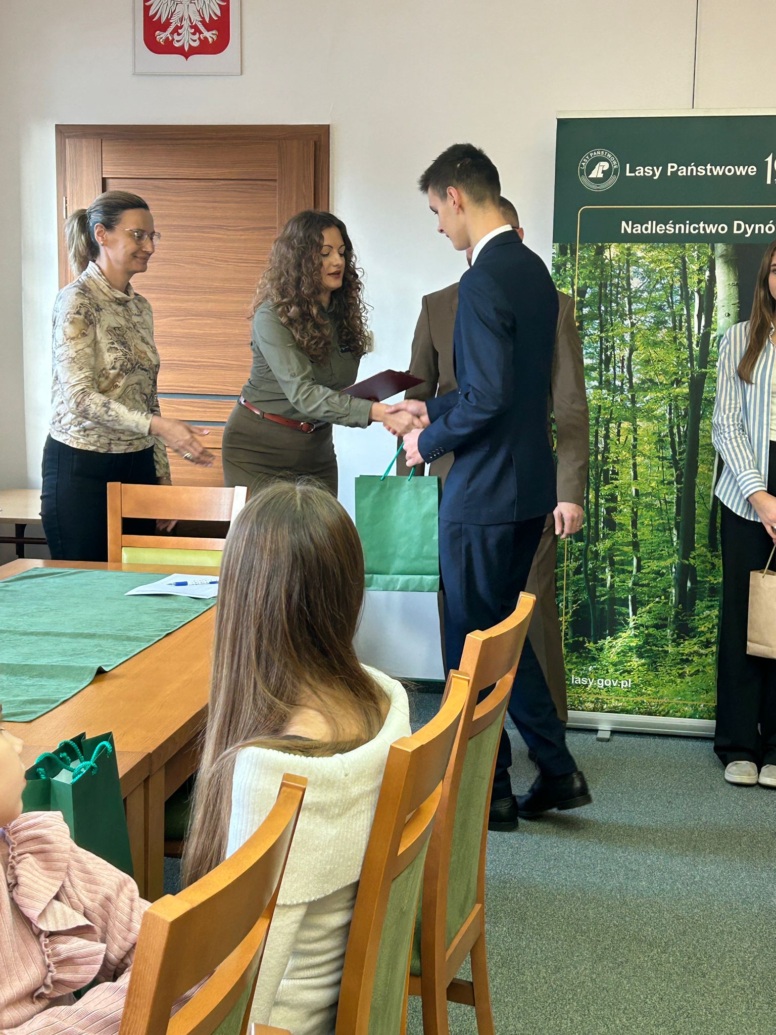 15 grudnia 2025 r. w siedzibie Nadleśnictwa Dynów odbyło się uroczyste rozdanie nagród dla laureatów uczestniczących w konkursie plastycznym na najładniejszą kartkę bożonarodzeniową z motywem leśnych.