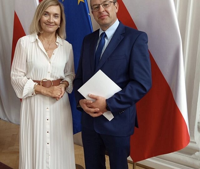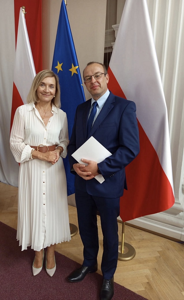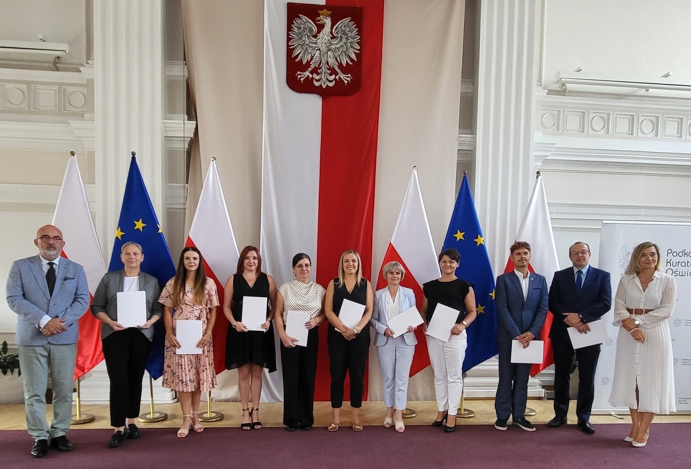 W dniu 29.08.2025 r. w sali Kolumnowej Podkarpackiego Urzędu Wojewódzkiego w Rzeszowie odbyło się spotkanie z Podkarpackim Kuratorem Oświaty – Panią Dorotą Nowak-Maluchnik oraz I Wicekuratorem Oświaty – Panem Piotrem Zychem podczas którego nauczyciel Zespołu Szkół Zawodowych im. Kardynała Stefana Wyszyńskiego w Dynowie p. Piotr Cygan odebrał akt nadania najwyższego stopnia awansu zawodowego nauczyciela dyplomowanego. Następnie Pani Kurator i Pan Wicekurator uścisnęli dłoń każdemu nauczycielowi oraz wręczyli akty nadania stopnia awansu nauczyciela dyplomowanego życząc dalszych sukcesów w pracy pedagogicznej.