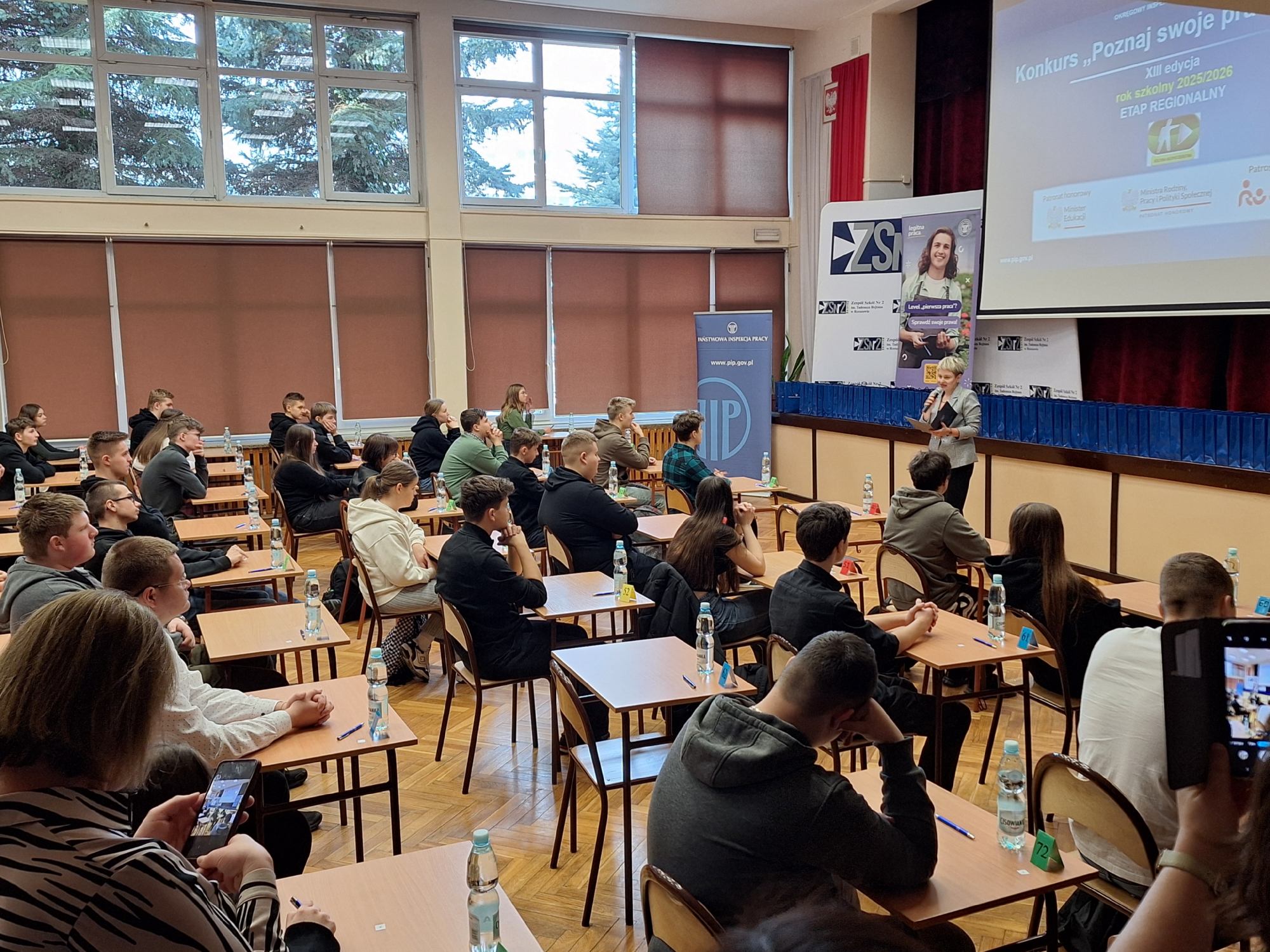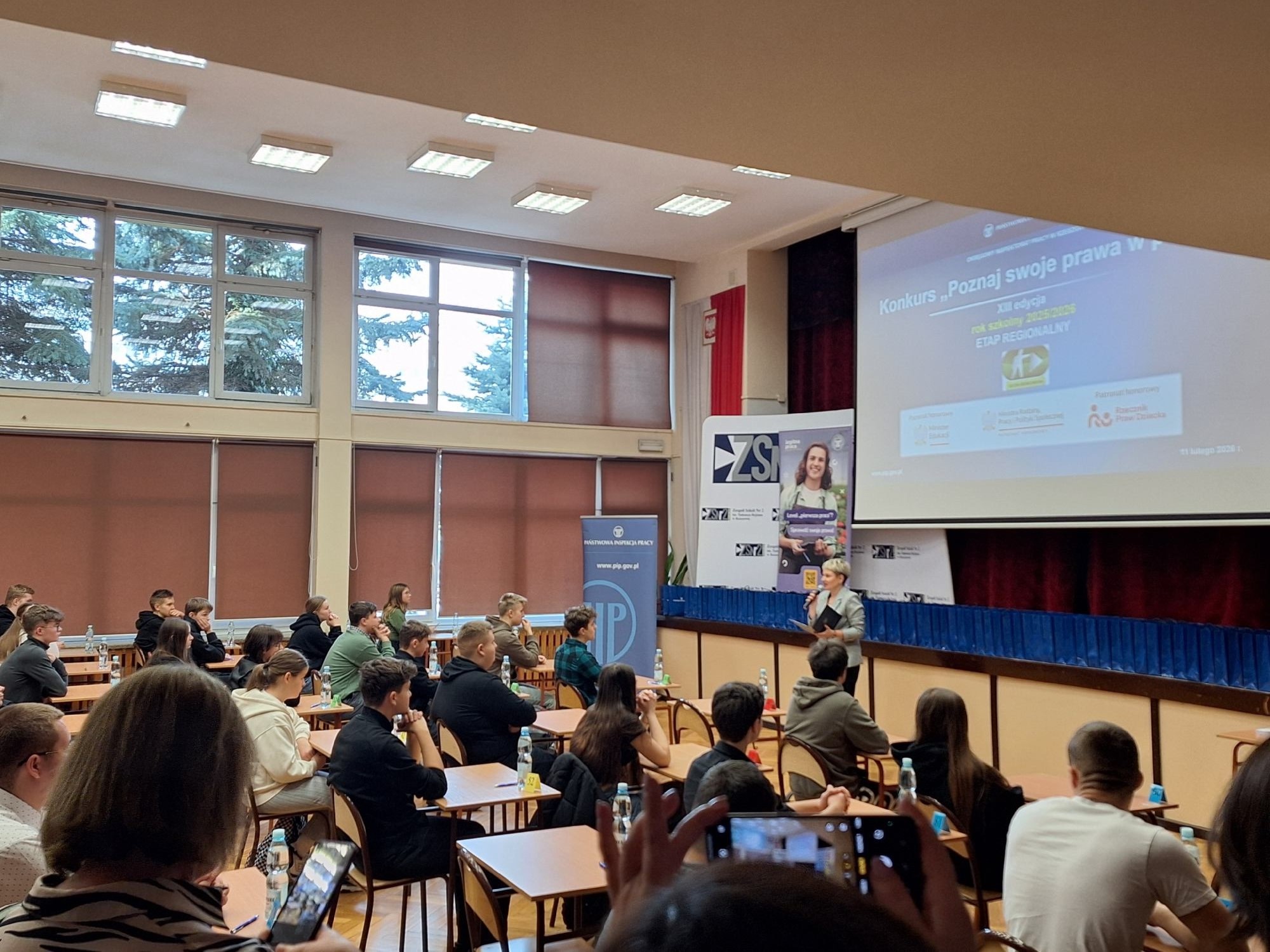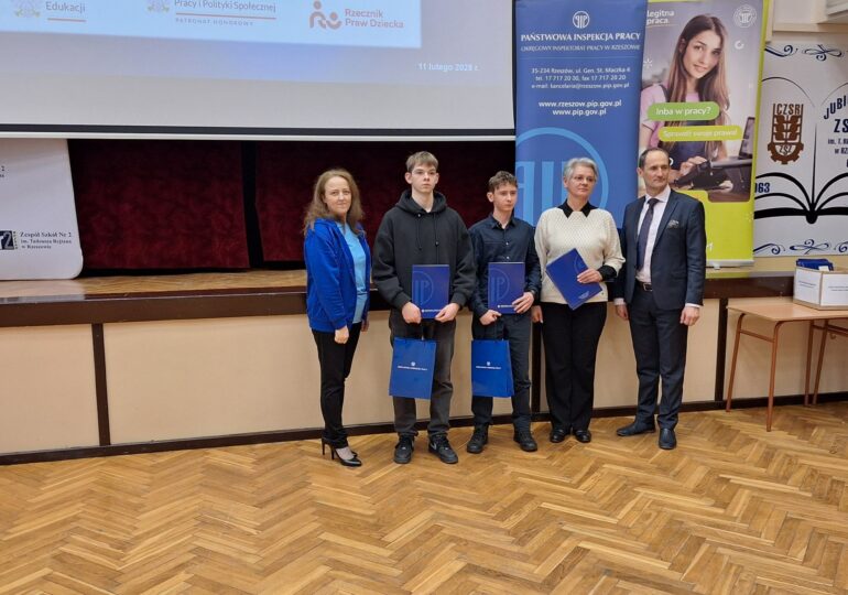W dniu 11 lutego 2026 r. w Zespole Szkół nr 2 im. Tadeusza Rejtana w Rzeszowie odbył się drugi etap konkursu dla uczniów szkół ponadpodstawowych uczestniczących w realizacji programu edukacyjnego Okręgowego Inspektoratu Pracy w Rzeszowie „Kultura bezpieczeństwa”. Państwowa Inspekcja Pracy w Warszawie wspólnie z oddziałem regionalnym po raz kolejny zorganizowała konkurs z wiedzy o bezpieczeństwie i higienie pracy oraz prawie pracy dla uczniów szkół ponadpodstawowych pt. „Poznaj swoje prawa w pracy”.