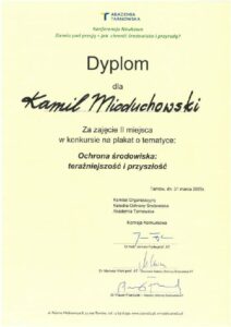 II miejsce Kamila Mioduchowskiego w konkursie na plakat „Ochrona środowiska – teraźniejszość i przyszłość”.