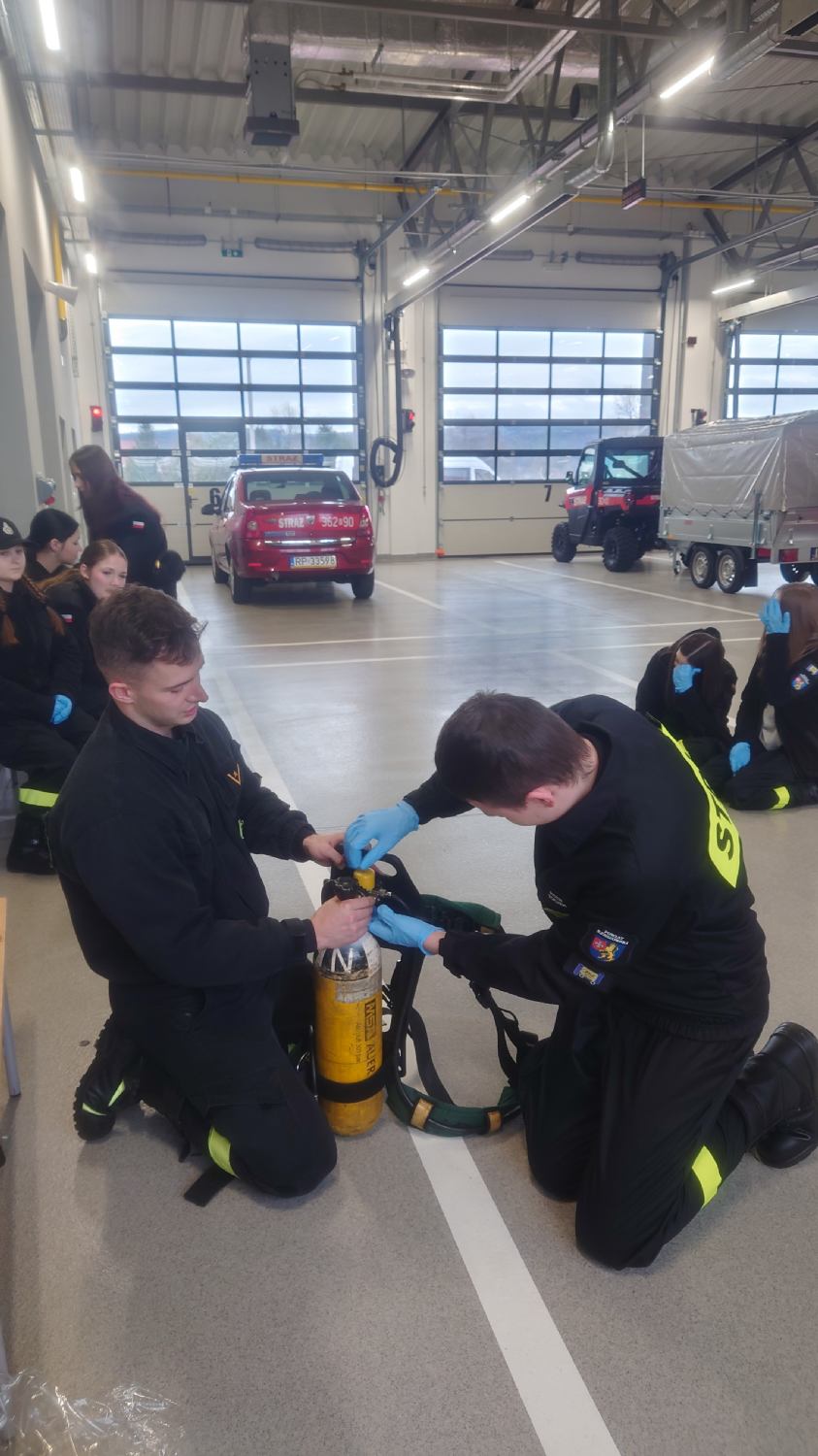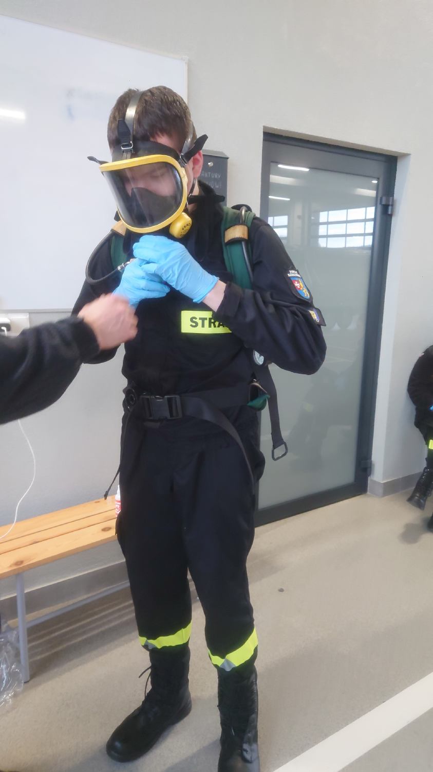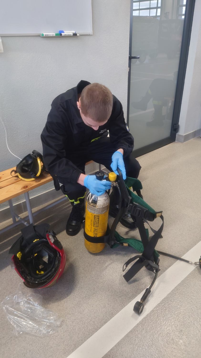 W dniu 09.12.2025r. uczniowie klasy 1TL (5 – letnie technikum w zawodzie technik logistyk z innowacją pedagogiczną ratowniczo – pożarniczą) na terenie Jednostki Ratowniczo-Gaśniczej w Dubiecku mieli okazję po raz kolejny zetknąć się z profesjonalnym sprzętem wykorzystywanym przez strażaków, a dokładniej z aparatami powietrznymi ODO. Podczas zajęć została omówiona budowa i zasada działania aparatu, procedura przygotowania go do pracy oraz zasady poprawnego użytkowania. Każdy uczeń mógł założyć maskę, sprawdzić jej dopasowanie oraz zapoznać się z najważniejszymi elementami, na które zwraca uwagę ratownik przed wejściem do działań. Aparat jest podstawowym zabezpieczeniem w środowisku zadymionym oraz wszędzie tam, gdzie nie ma bezpiecznego dostępu do powietrza. Takie doświadczenia budują świadomość odpowiedzialności i pokazują, że praca strażaka opiera się na znajomości sprzętu, jego poprawnym przygotowaniu oraz zasadach bezpieczeństwa. Uczniowie odbyli zajęcia pod opieką Pana Piotra Marcinka i mł. asp. Jacka Lignowskiego.