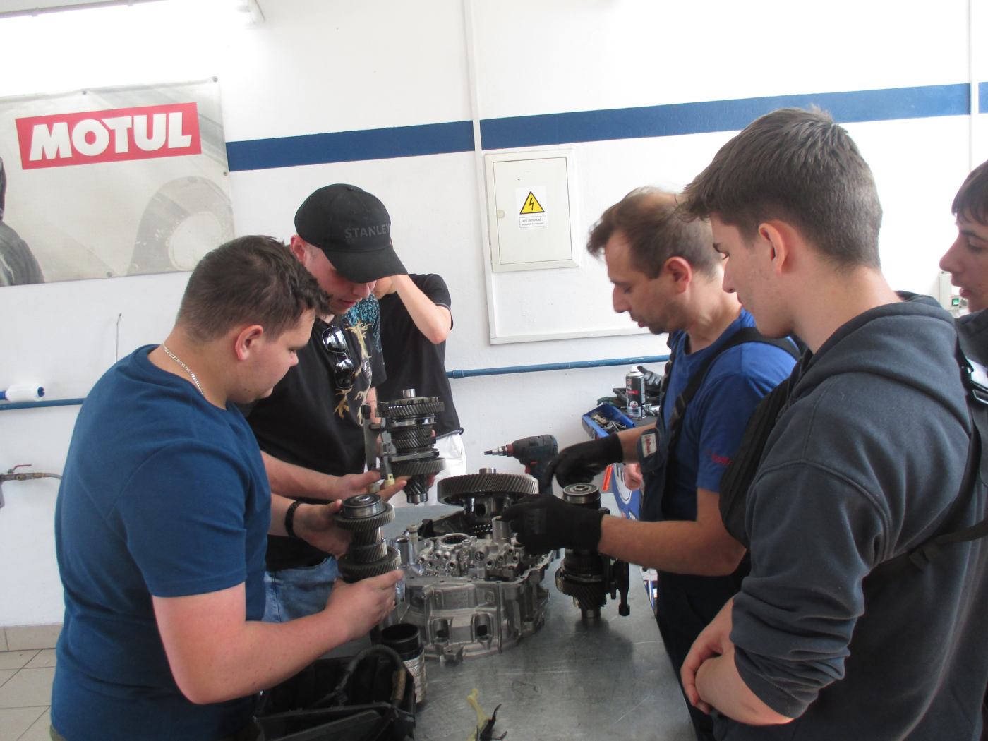 W dniach 2 czerwca – 4 czerwca 2025r. – 8 uczniów Technikum w Zespole Szkół Zawodowych oraz Branżowej Szkoły I stopnia w Zespole Szkół Zawodowych im. Kard. Stefana Wyszyńskiego w Dynowie odbyło 18 godzinne szkolenie o tematyce: „Naprawa automatycznych skrzyń biegów” w projekcie: „Zwiększenie szans na rynku pracy. Nowa oferta szkolnictwa zawodowego w jednostkach oświatowych powiatu rzeszowskiego.” w ramach Programu Regionalnego Fundusze Europejskie dla Podkarpacia 2021-2027 PRIORYTET 7/ FEPK.07 Działanie 7.13 Szkolnictwo zawodowe. Szkolenie było zorganizowane przy współpracy z partnerem projektu: Cech Rzemiosł Wielobranżowych w Rzeszowie a odbyło się u pracodawcy w serwisie samochodowym – Firma: GHZ Automatic Sp. z o. o. w Rzeszowie Armii Krajowej 20. Szkolenie składało się z części teoretycznej, oraz praktycznej. Celem szkolenia było nabycie przez uczniów wiedzy i umiejętności z zakresu budowy, zasad działania oraz diagnostyki, obsługi i naprawy automatycznych skrzyni biegów różnych typów; ze sprzęgłem hydrokinetycznym, dwusprzęgłowej automatycznej skrzyni biegów. Uczniowie poznali zasady diagnozowania usterek, interpretacji kodów błędów, rozpoznawania usterek automatycznych skrzyń biegów względem silnika/systemu hamulcowego ABS itp. Przeprowadzono przegląd systemów, odczytywanie błędów, wartości rzeczywistych i przeprowadzenie adaptacji. Na zajęciach praktycznych uczniowie mieli możliwość samodzielnie dokonać naprawy automatycznej skrzyni biegów oraz przeprowadzić obsługę skrzyni poprzez dynamiczną wymianę oleju. Dzięki zdobyciu nowych kwalifikacji, uczniowie zwiększą własne szanse po ukończeniu szkoły na lepsze zatrudnienie. Zespół Szkół Zawodowych im. Kard. Stefana Wyszyńskiego w Dynowie stawia na fachowców!