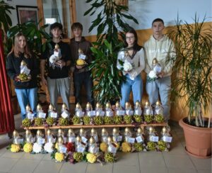 W tym roku szkolnym Samorząd Uczniowski pod opieką pani Katarzyny Marcinek, pani Honoraty Mikoś i pana Piotra Marcinka przygotował ponad 40 symbolicznych zniczy, które zostały przystrojone chryzantemą i w dniu 27 października 2025 r. złożone na grobach zmarłych pracowników naszej szkoły na cmentarzu w Dynowie. W kolejnych dniach zostaną odwiedzone cmentarze w okolicznych miejscowościach, gdzie spoczywają zmarli pedagodzy, a także przedwcześnie zmarli uczniowie Zespołu Szkół Zawodowych w Dynowie. Samorząd Uczniowski organizując takie wyjścia pokazuje, że oddaje należny szacunek zmarłym nauczycielom i pracownikom szkoły, a także wskrzesza pamięć o zmarłych koleżankach i kolegach. Wdzięczna pamięć o nieżyjących pedagogach i pracownikach niepedagogicznych tworzących niegdyś chlubną historię naszej szkoły będzie przekazywana przez nas – pracujących tu obecnie – kolejnym pokoleniom uczniów, bo jak ktoś powiedział – „nie ma przyszłości bez nawiązania…”. Dziękujemy Stowarzyszeniu Przyjaciół Zespołu Szkół Zawodowych w Dynowie za pomoc finansową przy zakupie zniczy, a paniom Karolinie Bal i Elżbiecie Kiszce za opiekę nad uczniami na cmentarzu w Dynowie.