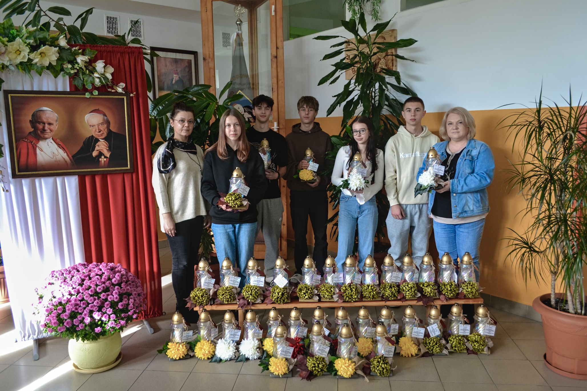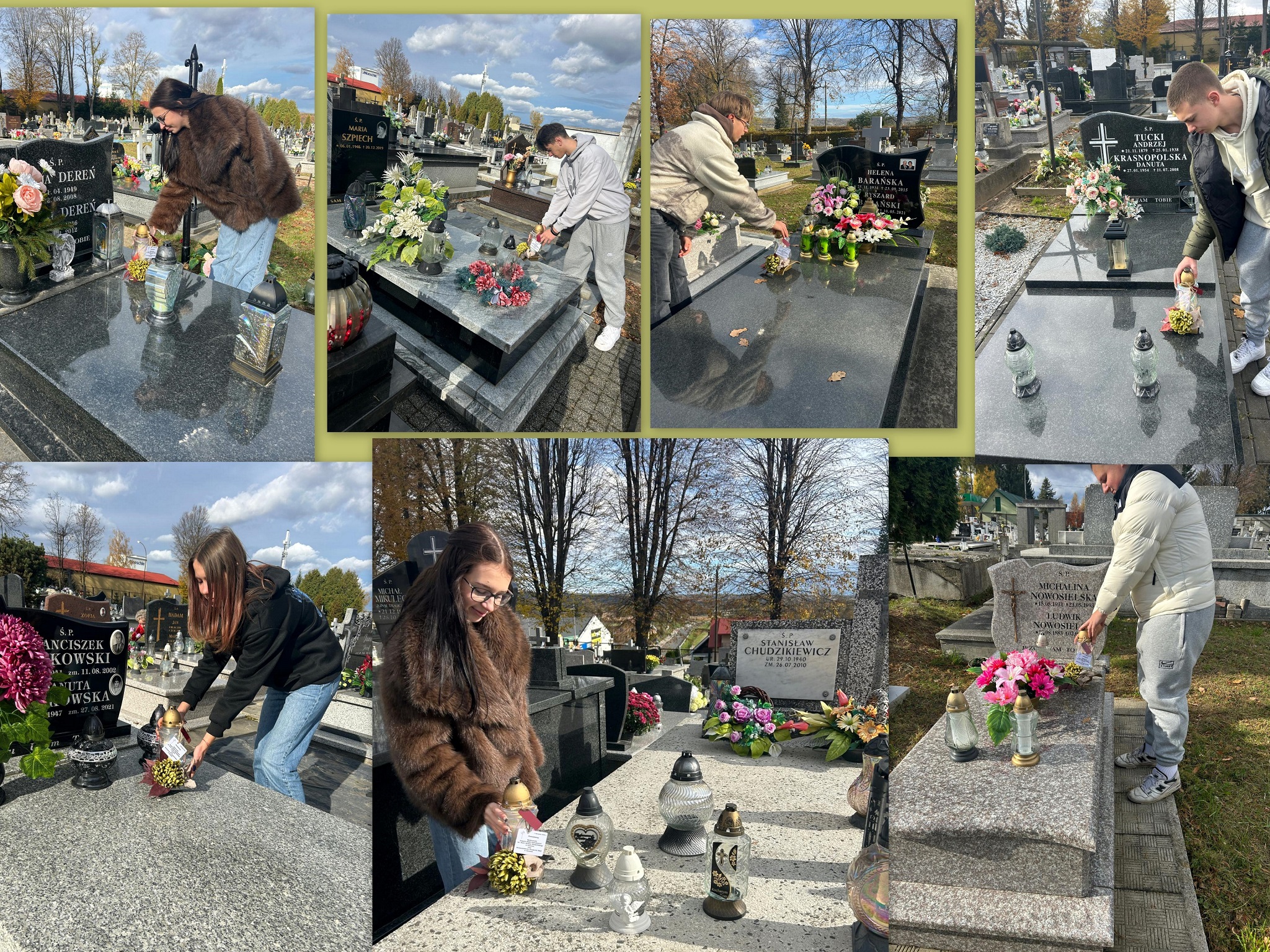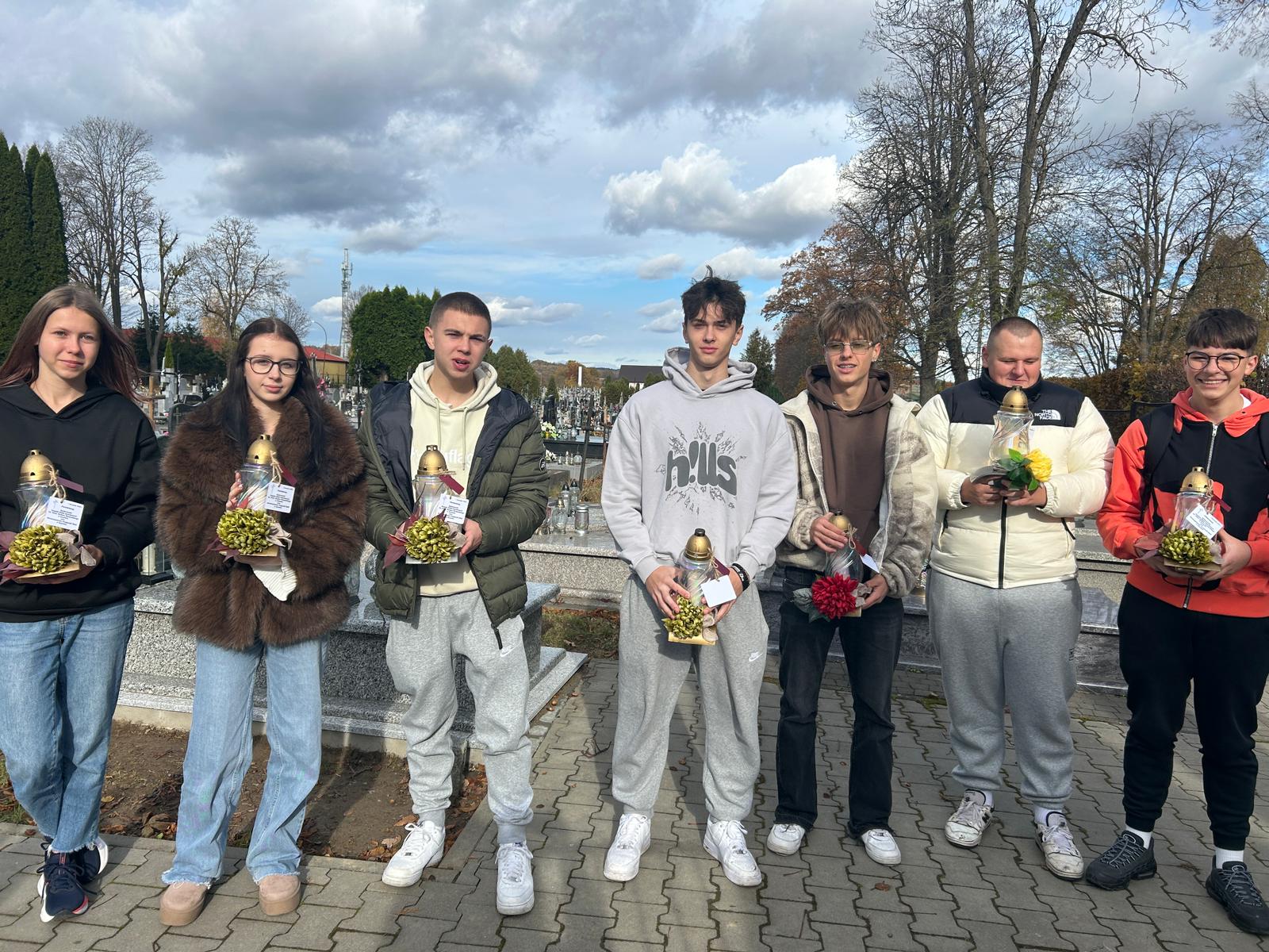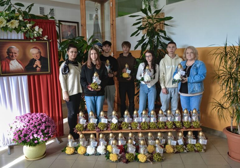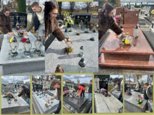 W tym roku szkolnym Samorząd Uczniowski pod opieką pani Katarzyny Marcinek, pani Honoraty Mikoś i pana Piotra Marcinka przygotował ponad 40 symbolicznych zniczy, które zostały przystrojone chryzantemą i w dniu 27 października 2025 r. złożone na grobach zmarłych pracowników naszej szkoły na cmentarzu w Dynowie. W kolejnych dniach zostaną odwiedzone cmentarze w okolicznych miejscowościach, gdzie spoczywają zmarli pedagodzy, a także przedwcześnie zmarli uczniowie Zespołu Szkół Zawodowych w Dynowie. Samorząd Uczniowski organizując takie wyjścia pokazuje, że oddaje należny szacunek zmarłym nauczycielom i pracownikom szkoły, a także wskrzesza pamięć o zmarłych koleżankach i kolegach. Wdzięczna pamięć o nieżyjących pedagogach i pracownikach niepedagogicznych tworzących niegdyś chlubną historię naszej szkoły będzie przekazywana przez nas – pracujących tu obecnie – kolejnym pokoleniom uczniów, bo jak ktoś powiedział – „nie ma przyszłości bez nawiązania…”. Dziękujemy Stowarzyszeniu Przyjaciół Zespołu Szkół Zawodowych w Dynowie za pomoc finansową przy zakupie zniczy, a paniom Karolinie Bal i Elżbiecie Kiszce za opiekę nad uczniami na cmentarzu w Dynowie.
