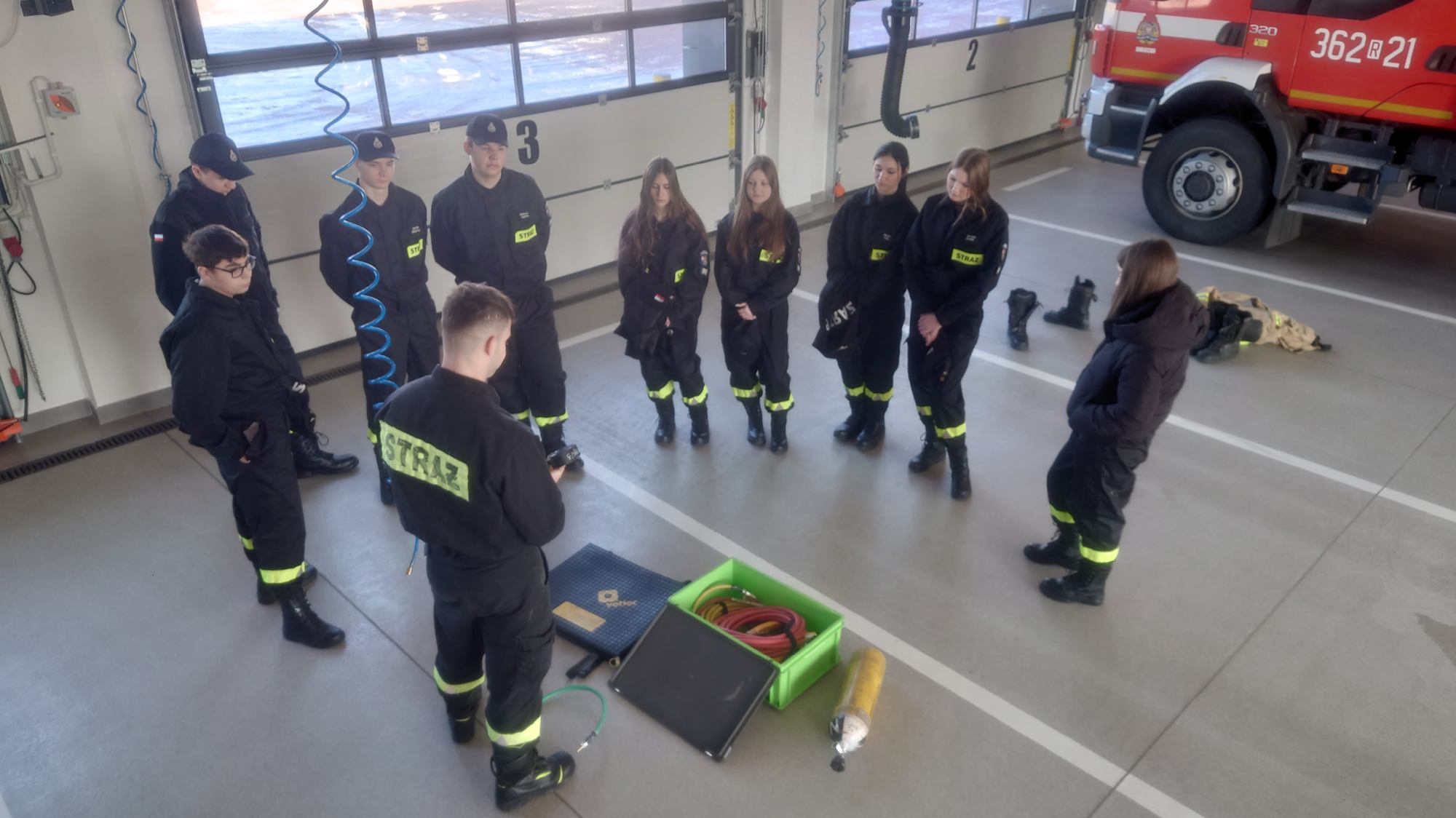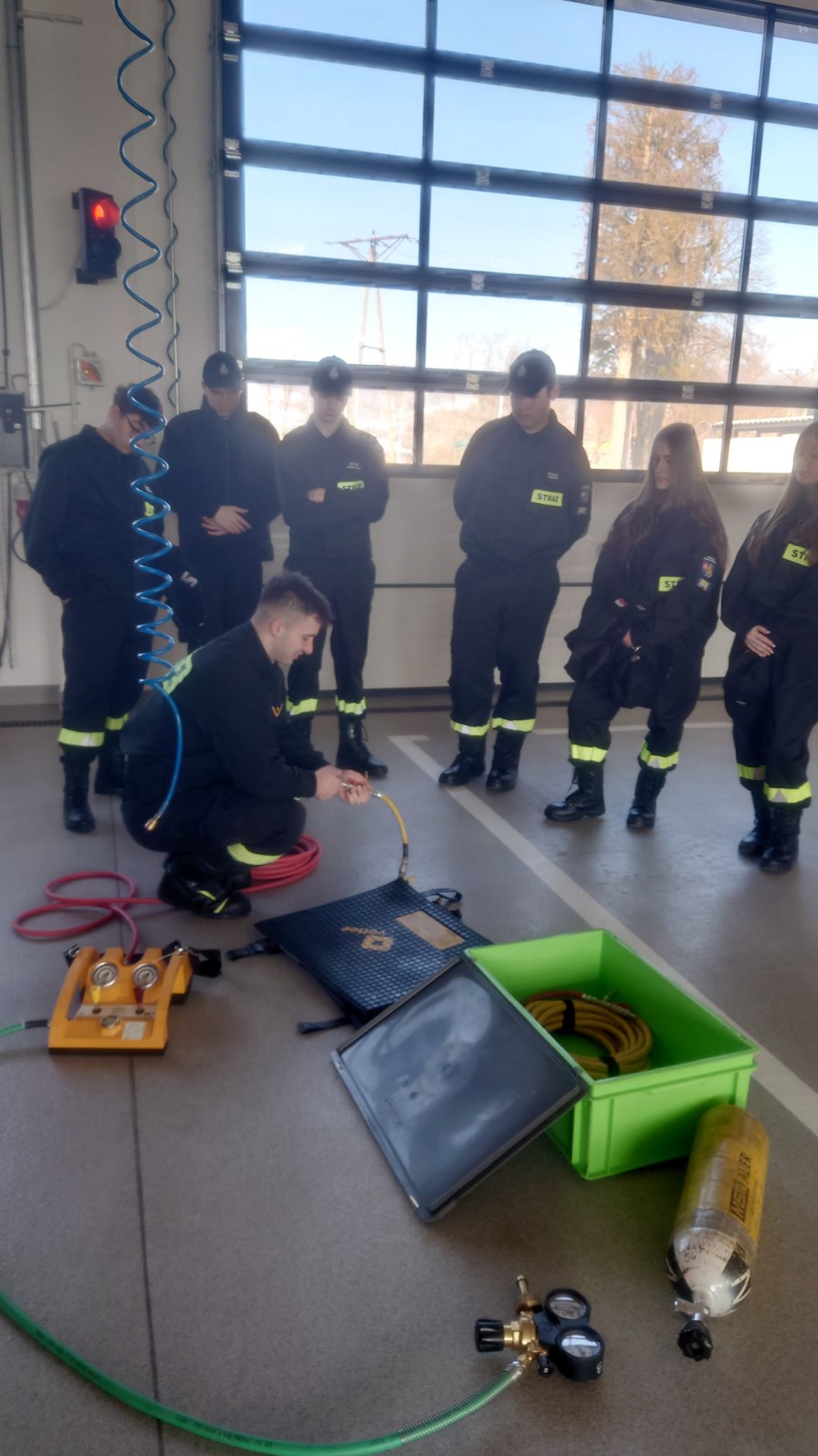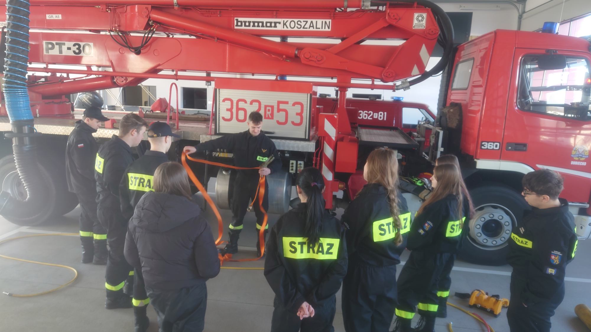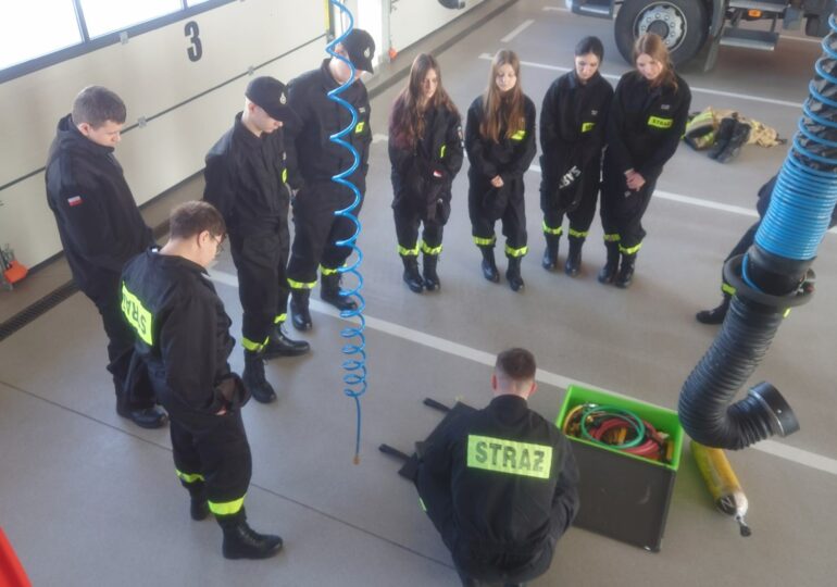 Poduszki pneumatyczne i pasy transportowe w praktyce – zajęcia klasy 1TPL w Jednostce Ratowniczo-Gaśniczej w Dubiecku