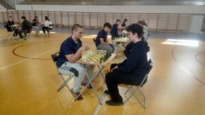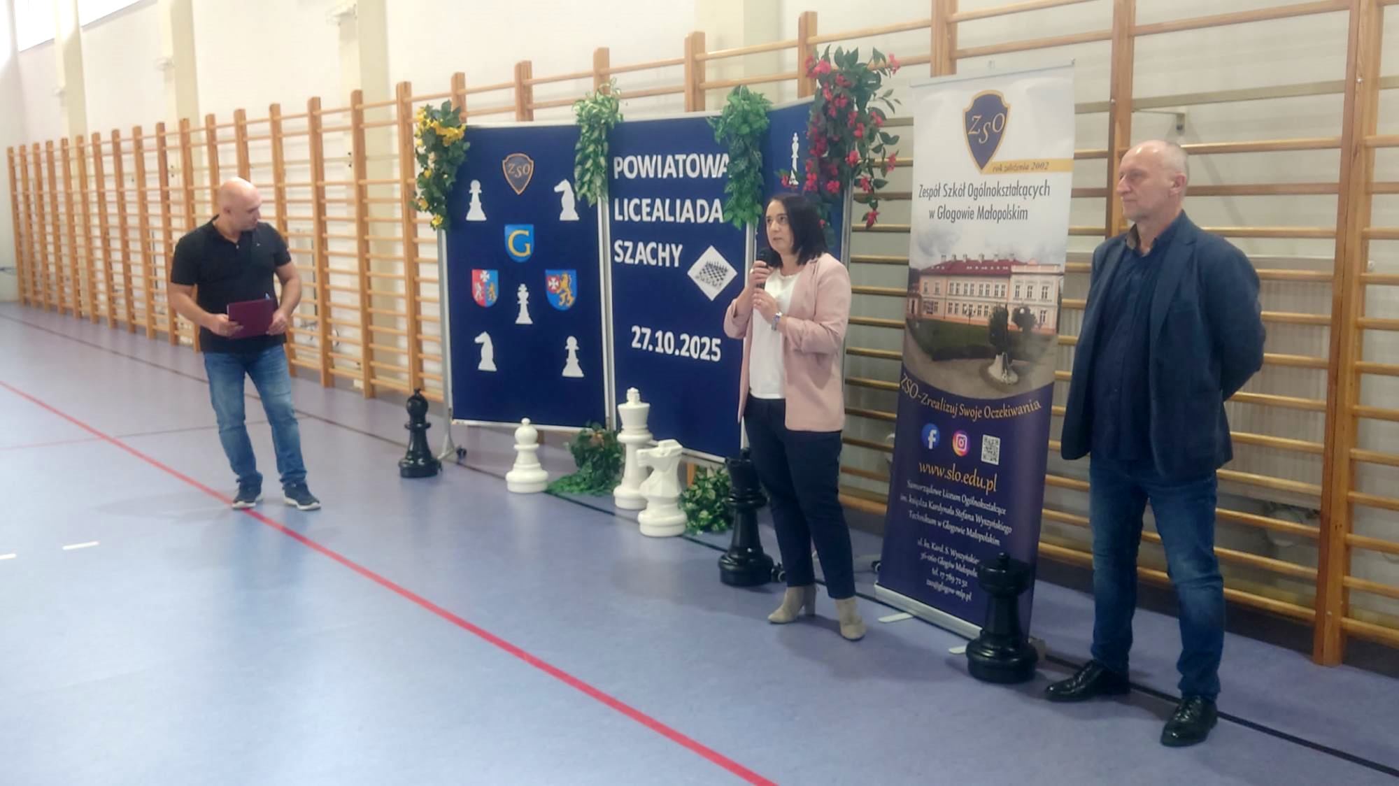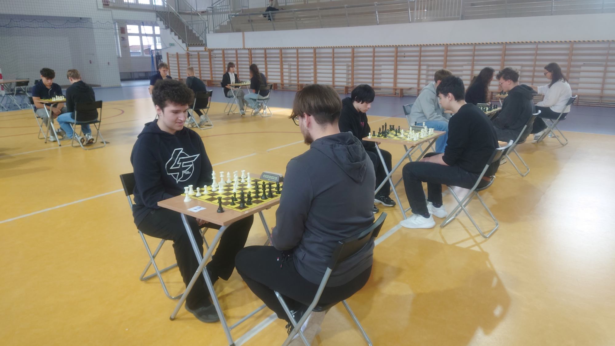 W dniu 27.10.2025 r. w Zespole Szkół Ogólnokształcących w Głogowie Małopolskim odbyła się Powiatowa Licealiada w szachach – gry drużynowe. W imprezie tej wraz z innymi szkołami ponadpodstawowymi z powiatu rzeszowskiego udział wzięła drużyna Zespołu Szkół Zawodowych im. Kardynała Stefana Wyszyńskiego w Dynowie w składzie: Eliza Tyka z kl. 4TL, Oskar Dusza z kl.3TI, Adrian Hyliński z kl. 3TI oraz Radosław Weselak z kl. 3TI. Turniej stał na bardzo wyrównanym poziomie, a o sukcesie w poszczególnych partiach, czy całych spotkaniach decydowały niuanse. Po rozegraniu wszystkich rund i podsumowaniu zdobytych punktów okazało się, że nasz zespół zajął I miejsce premiowane udziałem w etapie rejonowym Licealiady. Należy dodać, że we wszystkich rozegranych partiach Eliza i Radosław okazali się najlepszymi – niepokonanymi zawodnikami na swoich szachownicach. Za walkę, zaangażowanie i duży wysiłek umysłowy całej drużynie należą się ogromne podziękowania i szacunek. Gratulując osiągniętego wyniku życzymy powodzenia w kolejnym etapie zmagań szachowych. Opiekunem drużyny był Pan Piotr Marcinek.