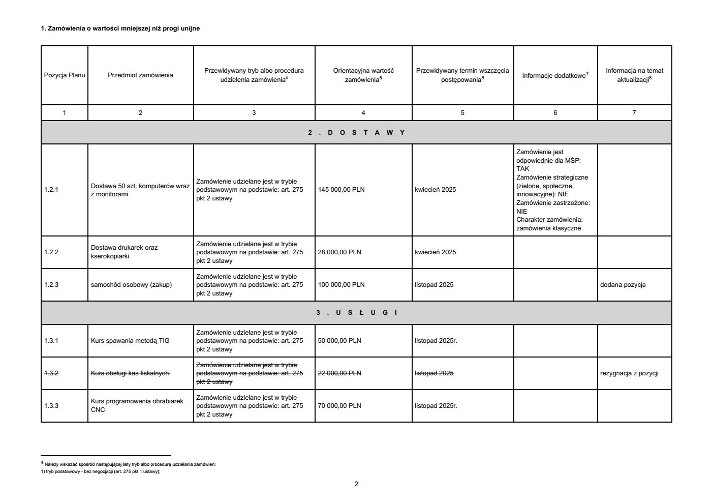 2) Kurs z zakresu. spawania metodą TIG. Dodatkowe zajęcia specjalistyczne dla uczniów ” – dla uczniów Technikum w zawodzie: t. pojazdów samochodowych i Branżowej Szkoły I stopnia, w zawodzie mechanik pojazdów samochodowych – 3 grupy po 12 uczniów, razem 36 osób. Na 1 grupę przypada 20 godz. teorii, 100 godz. Praktyki spawania. Terminy kursów: 1 gr. w 2024r., 1 gr. w 2025r., 1 gr. w 2026r.