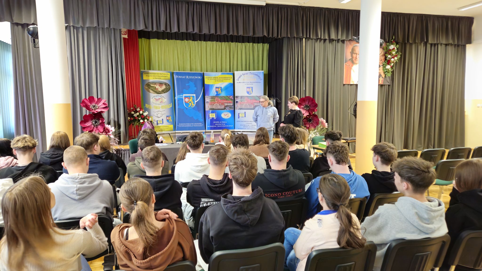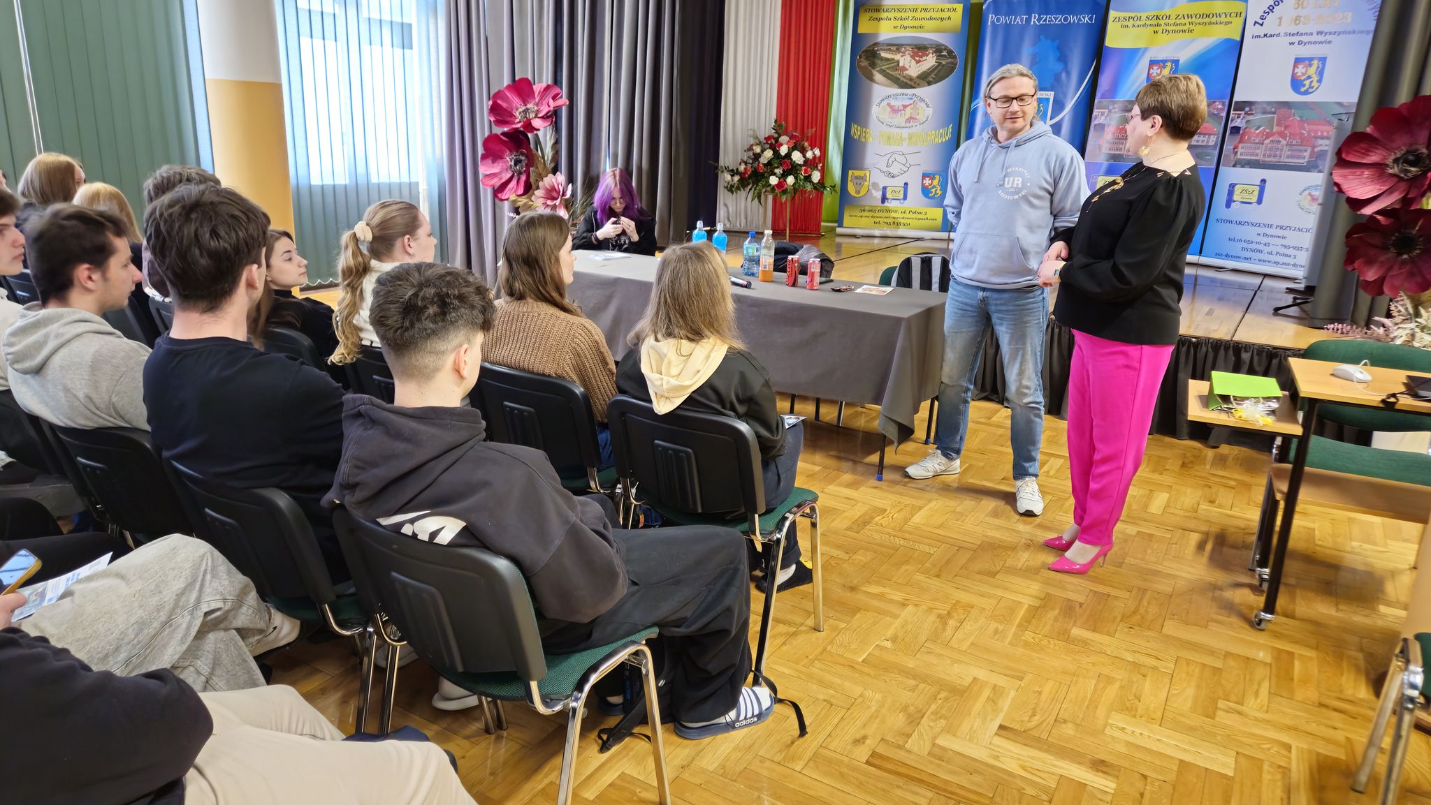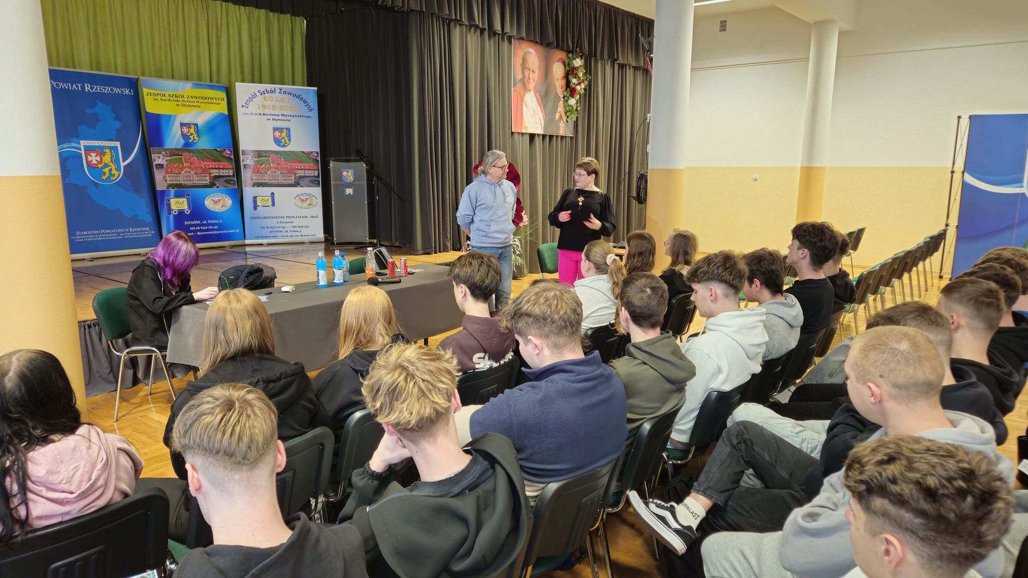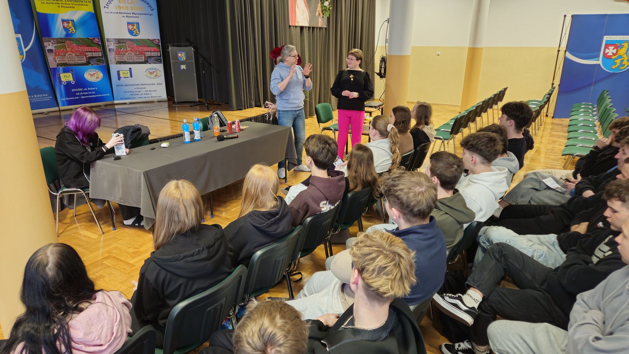 W dniu 18 marca 2026 r. w Zespole Szkół Zawodowych im. Kardynała Stefana Wyszyńskiego w Dynowie odbyło się spotkanie z Panem dr hab. Grzegorzem Zagułą prof. Uniwersytetu Rzeszowskiego, Dyrektorem Instytutu Technologii Żywności i Żywienia. Spotkanie rozpoczęła Pani Dyrektor Halina Cygan. Tematyka spotkania dotyczyła „Napojów funkcjonalnych – czym i jak się nawadniać?”. Celem spotkania było przybliżenie zagadnienia dotyczącego rodzaju napojów i ich wpływu na organizm człowieka. Poruszono również problem prawidłowego nawadniania – czym i jak się nawadniać?, na co zwrócić uwagę przy wyborze rodzaju wody mineralnej. W spotkaniu uczestniczyli uczniowie klas maturalnych: 5TPS, 5THL, 5TI pod opieką nauczycieli. Spotkanie zorganizowała: Pani Elżbieta Kiszka. #Powiat Rzeszowski #Kuratorium Oświaty #Uniwersytet Rzeszowski