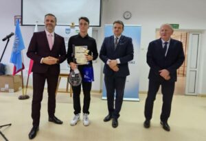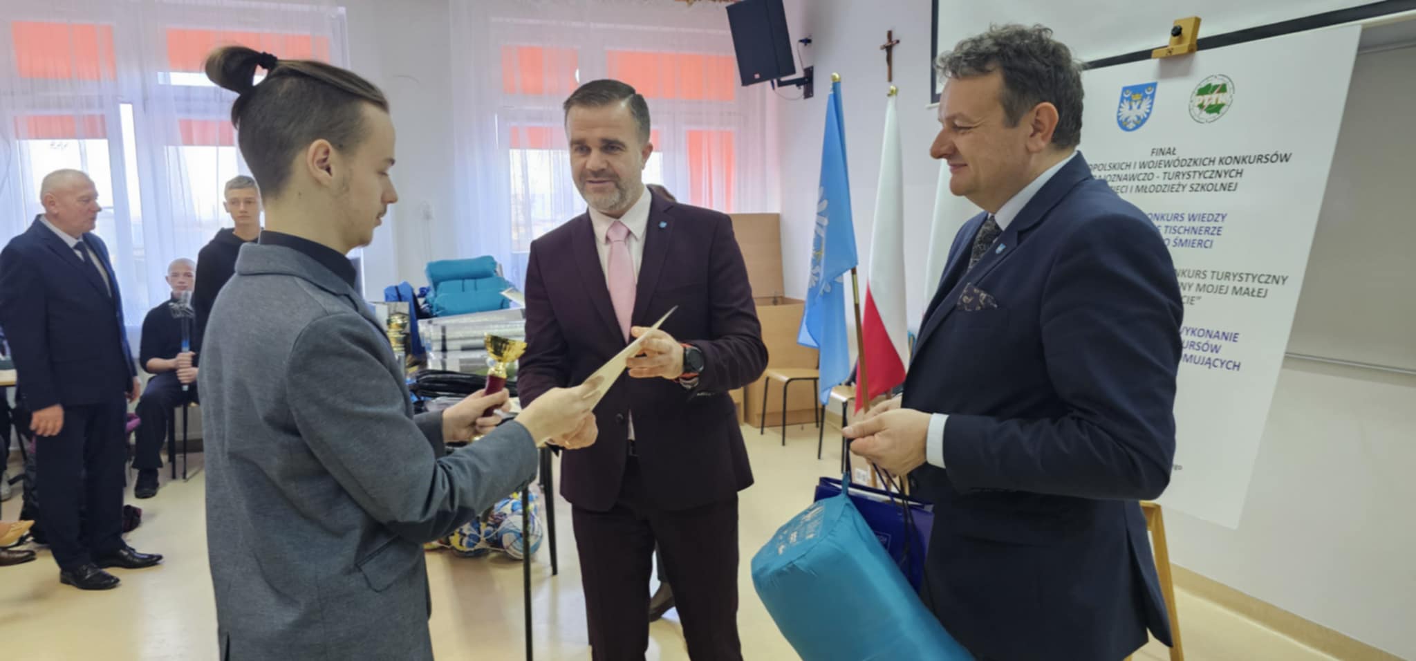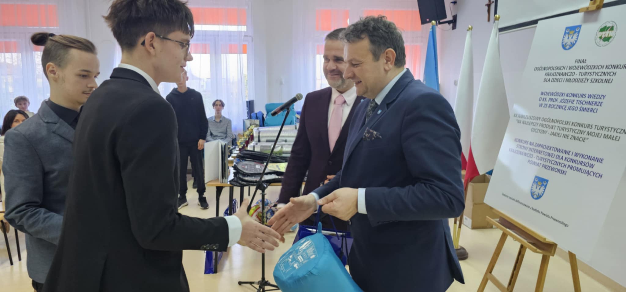 W dniu 13 listopada 2025r. w Zespole Szkół Zawodowych w Przeworsku odbyła się uroczysta gala wręczenia nagród „Wojewódzkiego konkursu na zaprojektowanie i wykonanie strony internetowej konkursów krajoznawczo–turystycznych promujących Powiat Przeworski”. W uroczystości wzięli udział laureaci konkursu, wśród których znaleźli się uczniowie Zespołu Szkół Zawodowych im. Kardynała Stefana Wyszyńskiego w Dynowie pod opieką pani Honoraty Mikoś. Uroczystego wręczenia nagród, dyplomów i pucharów dokonał Starosta Powiatu Przeworskiego Pan Dariusz Łapa, Członek Zarządu Powiatu Przeworskiego Pan Krzysztof Bartuś oraz przewodniczący konkursu Pan Marian Dzimira.