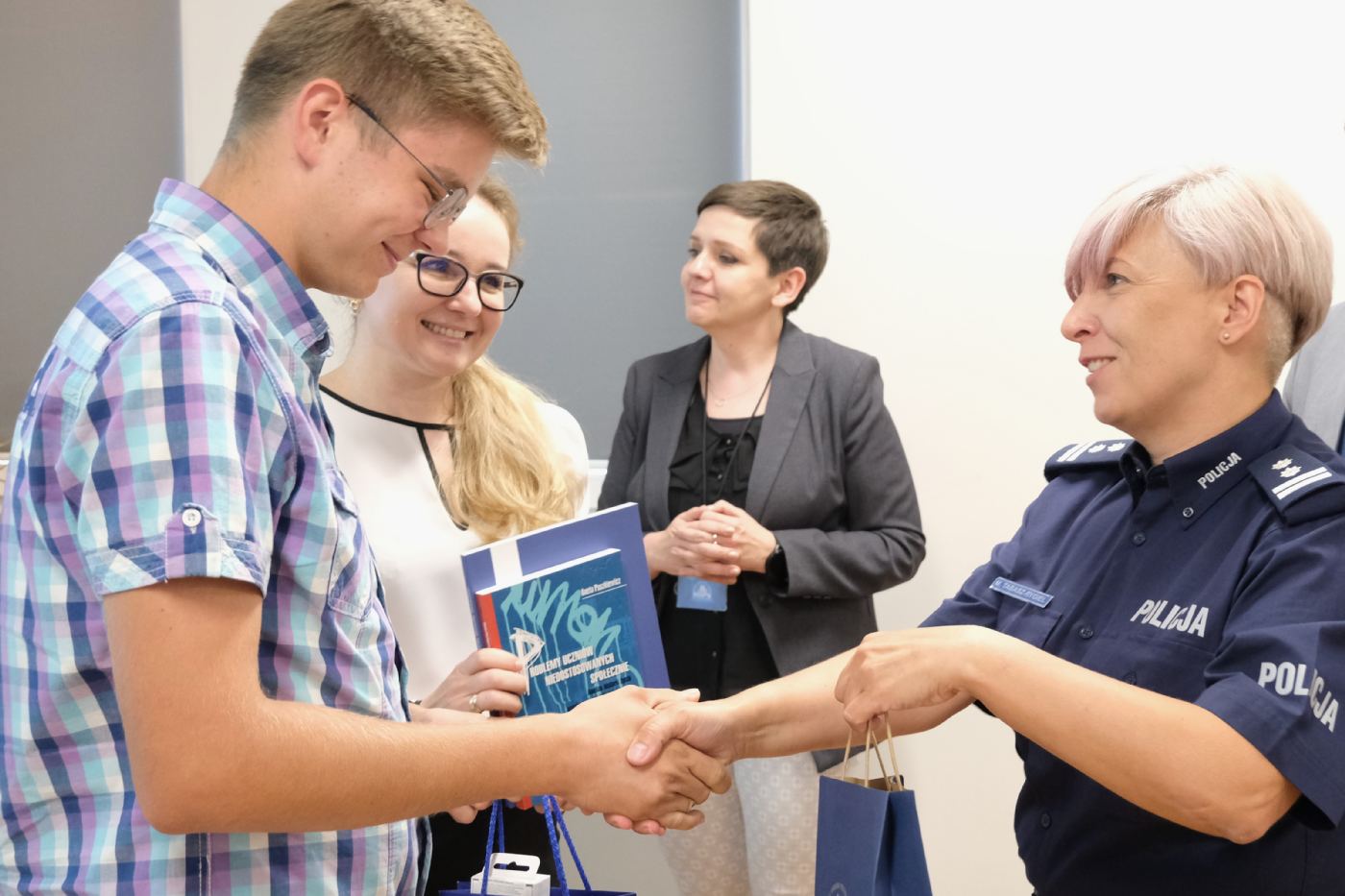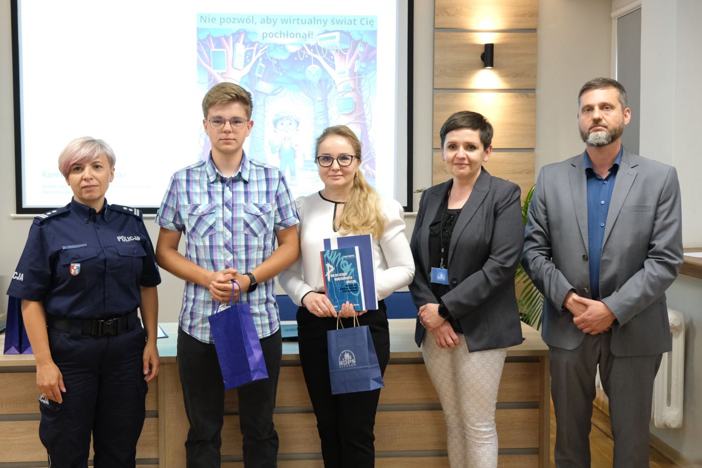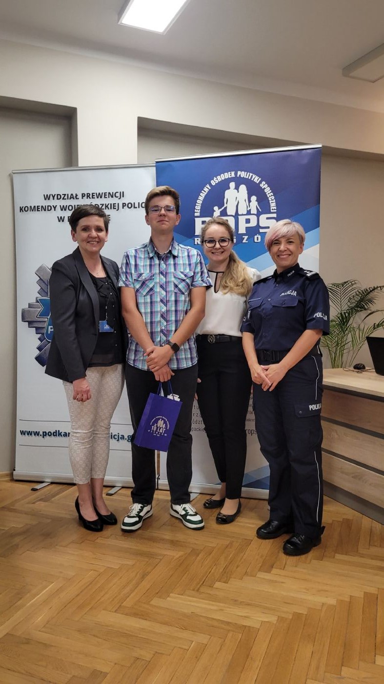 Nagrody laureatom wręczali: Zastępca Dyrektora Regionalnego Ośrodka Polityki Społecznej w Rzeszowie Pani Ewelina Bembenek, Naczelnik Wydziału Prewencji Komendy Wojewódzkiej Policji w Rzeszowie mł. insp. Marta Tabasz – Rygiel, zastępca Naczelnika Wydziału Łączności i Informatyki Komendy Wojewódzkiej w Rzeszowie Pan Krzysztof Biel.