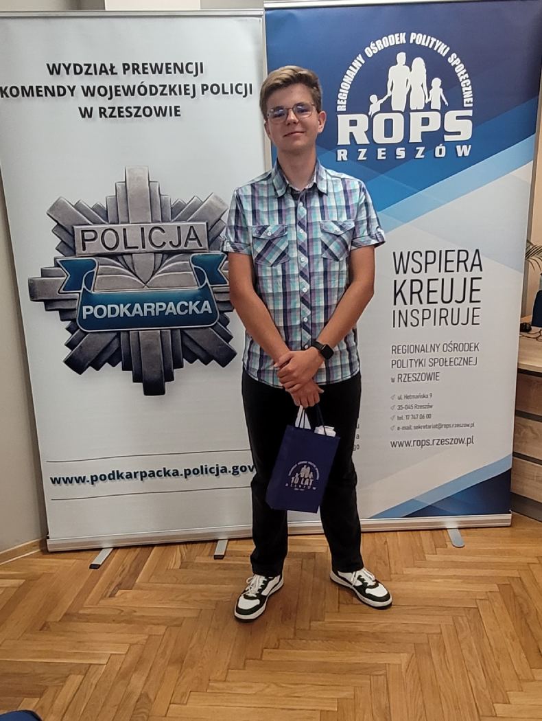 W dniu 13.06.2024r. w siedzibie Regionalnego Ośrodka Polityki Społecznej w Rzeszowie, odbyła się gala wręczenia nagród laureatom I edycji Wojewódzkiego Konkursu na MEM profilaktyczny: „Świadomy cyberzagrożeń – bezpieczny w realu”, którego celem była edukacja i uwrażliwienie na właściwe zachowania w sieci oraz kształtowanie umiejętności i nawyku wyboru bezpiecznych zachowań przez młodzież podczas korzystania z Internetu.