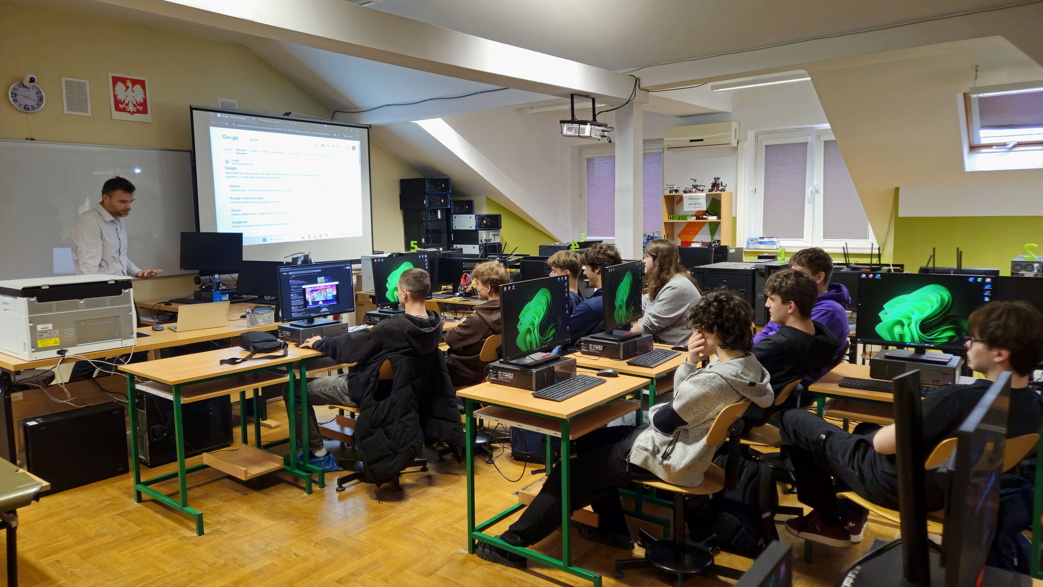Szkolenie miało charakter praktyczny – uczniowie mogli samodzielnie testować narzędzia oraz zobaczyć, jak sztuczna inteligencja wykorzystywana jest w codziennym życiu i pracy, w tym także do generowania fikcyjnych postaci, kont i materiałów (np. filmów) publikowanych w mediach społecznościowych.