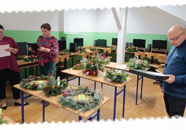 Możecie być z siebie dumni – wszystkie stroiki zostały przekazane zaprzyjaźnionym instytucjom ZSzZ w Dynowie, przyczyniając się w ten sposób do promowania naszej szkoły w lokalnym środowisku. Jeszcze raz serdecznie wszystkim dziękujemy i zapraszamy na kolejny świąteczny konkurs.