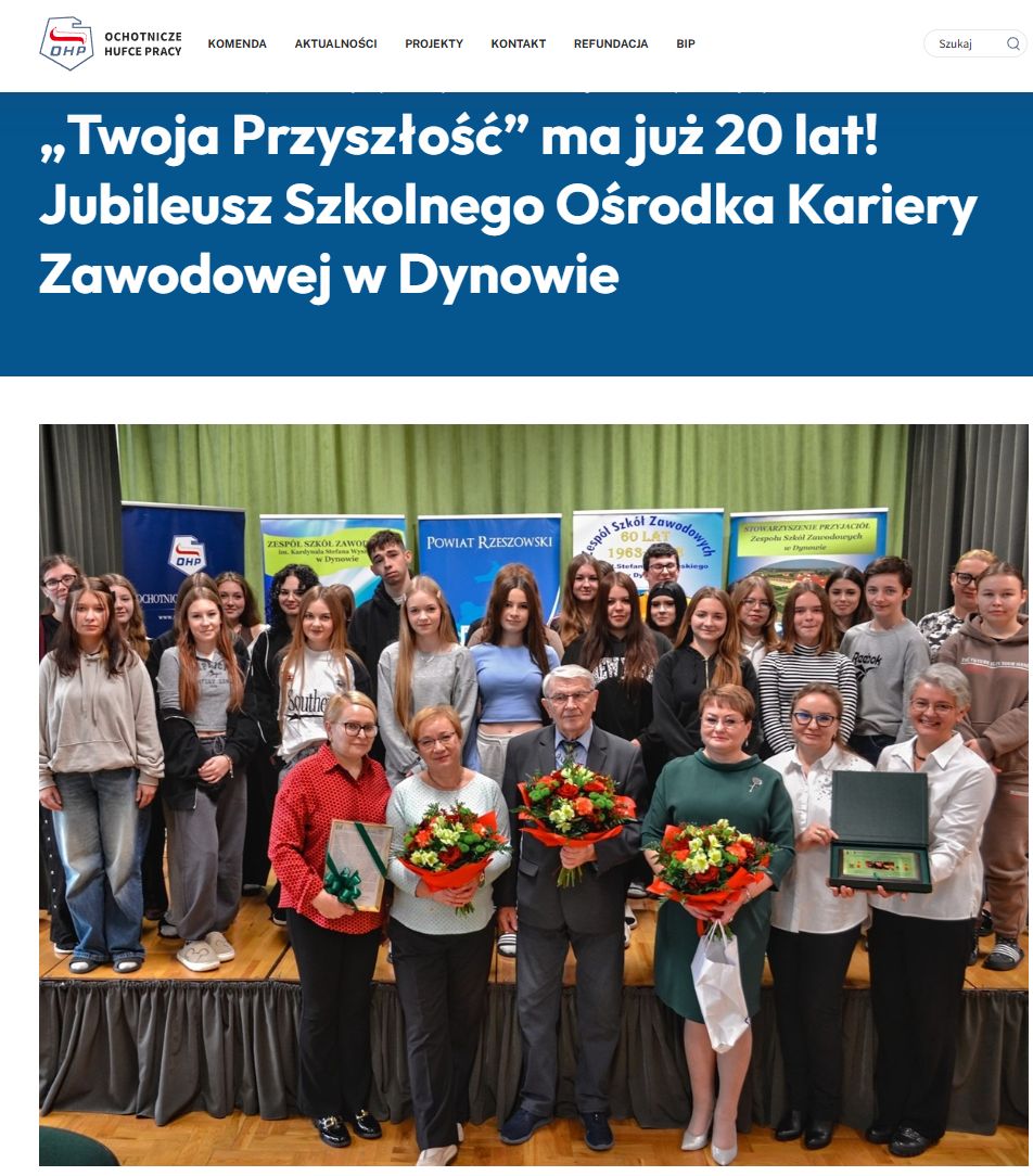 5 listopada w Zespole Szkół Zawodowych im. Kardynała Stefana Wyszyńskiego w Dynowie odbyła się uroczystość z okazji 20-lecia Szkolnego Ośrodka Kariery Zawodowej „Twoja Przyszłość”.