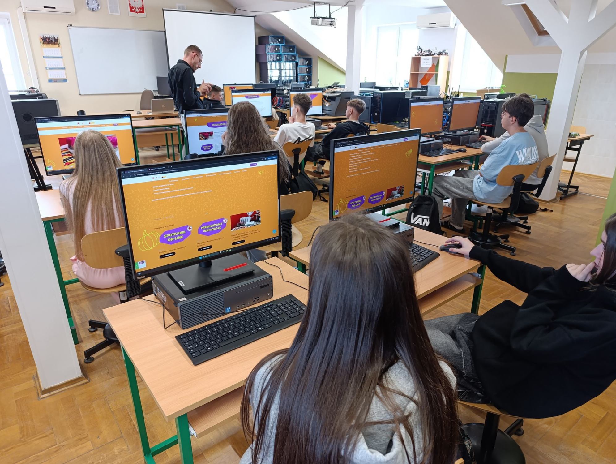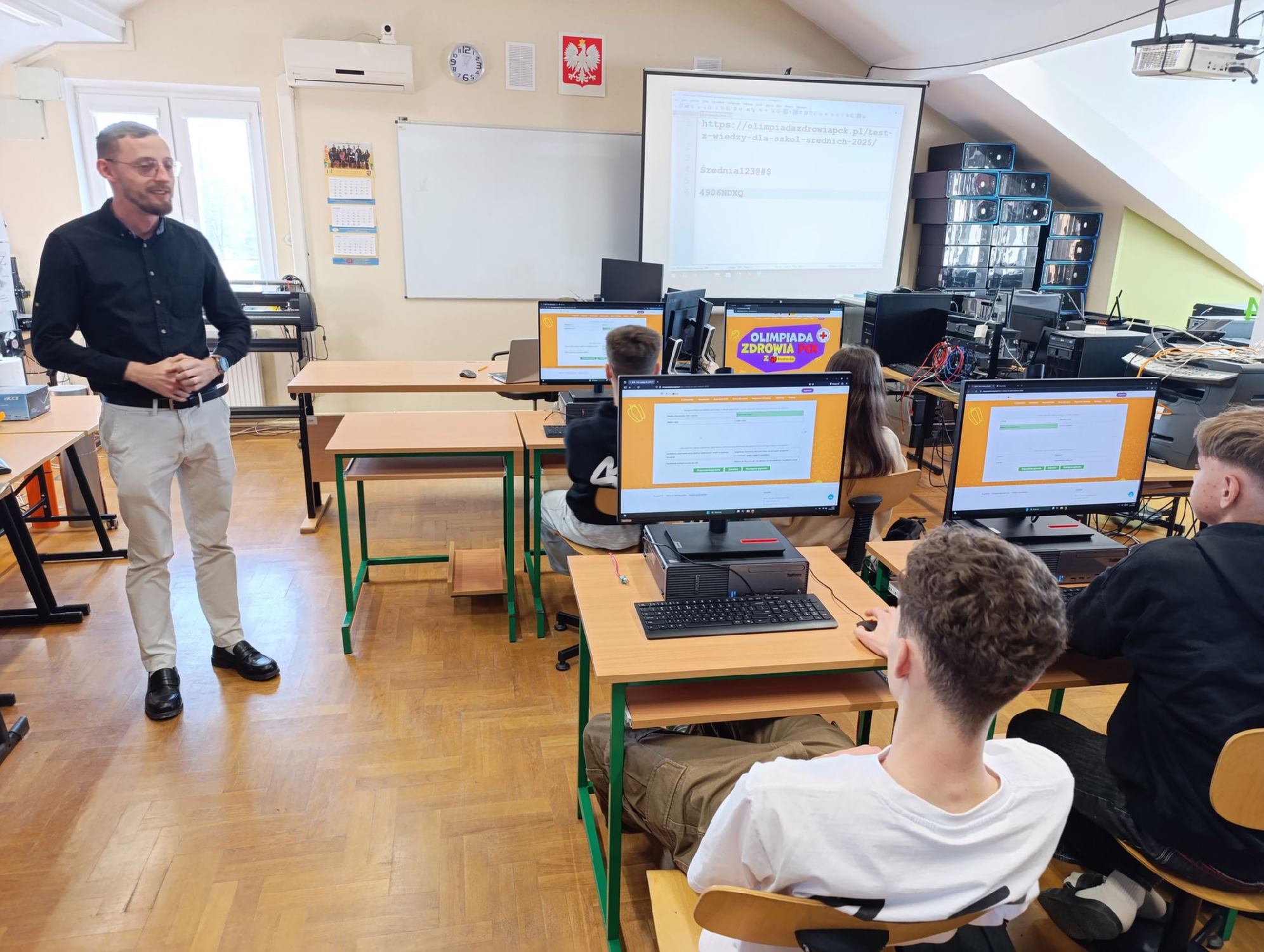 w dniu 14.11.2025 r. uczniowie Zespołu Szkół Zawodowych im. Kardynała Stefana Wyszyńskiego w Dynowie wzięli udział w XXXIII Olimpiadzie Wiedzy o Zdrowiu, organizowanej przez sieć sklepów Biedronka we współpracy z Polskim Czerwonym Krzyżem. Konkurs, którego celem jest promowanie zdrowego stylu życia, poszerzanie wiedzy z zakresu profilaktyki zdrowotnej oraz rozwijanie świadomości prozdrowotnej wśród młodzieży, cieszył się dużym zainteresowaniem naszych uczniów. Szkolnym koordynatorem wydarzenia był pan Paweł Siwulec, który przygotował młodzież do udziału w olimpiadzie oraz czuwał nad jej przebiegiem na etapie szkolnym. Udział naszych uczniów w olimpiadzie to nie tylko możliwość sprawdzenia swojej wiedzy, ale również okazja do kształtowania postaw sprzyjających dbałości o zdrowie i bezpieczeństwo własne oraz innych. Najwyższy wynik uzyskali Renata Tomoń z kl. 4TH oraz Mateusz Martowicz z kl. 2THI. Gratulujemy wszystkim uczestnikom zaangażowania i życzymy sukcesów w kolejnych etapach konkursu!