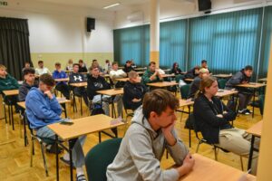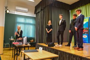 W dniu 27 października 2025r. w auli szkolnej odbyły się „Warsztaty męskiego ubioru” dla uczniów klas maturalnych i klasy 3a branżowej szkoły I stopnia. Celem warsztatów było szerzenie wiedzy wśród młodych ludzi na temat eleganckiego wyglądu oraz kluczowych aspektów etykiety szykownego ubioru męskiego. Podczas warsztatów uczniowie mogli krok po kroku poznać tajniki męskiej mody – głównie garniturów na różne okazje. W rolę modeli wcieliła się trójka maturzystów. Przedstawicielki marki Giacomo Conti omawiając poszczególne stylizacje, udzielały wskazówek dotyczących, m.in. długości rękawów marynarki, nogawek spodni, mankietów koszuli, brustaszy i butonierki, a także zalet noszenia kamizelek i prawidłowej długości krawata. Prowadzące zwróciły uwagę na istotną kwestię: ”Jak Cię widzą, tak Cię piszą”, czyli dlaczego warto dopasować stylizację do danej sytuacji i jakie korzyści z tego wynikają. Warsztaty cieszyły się dużym zainteresowaniem wśród uczniów i z pewnością pomogą w dobrze stylizacji na różne okazje.
