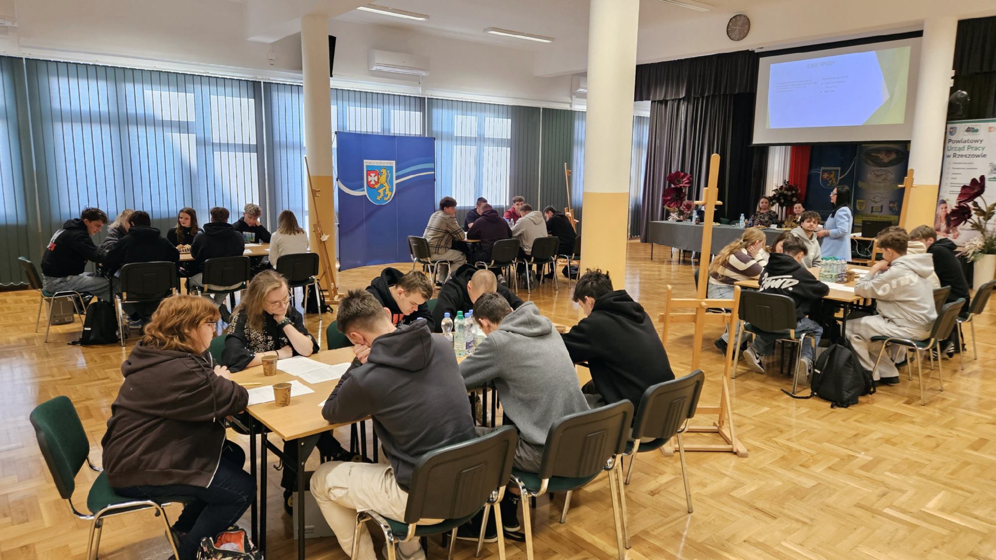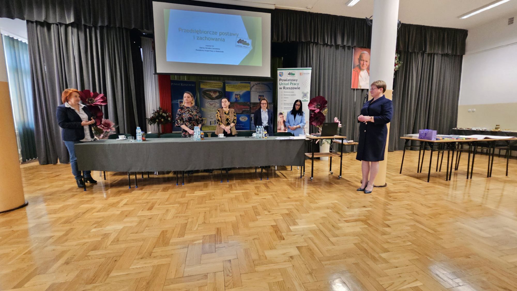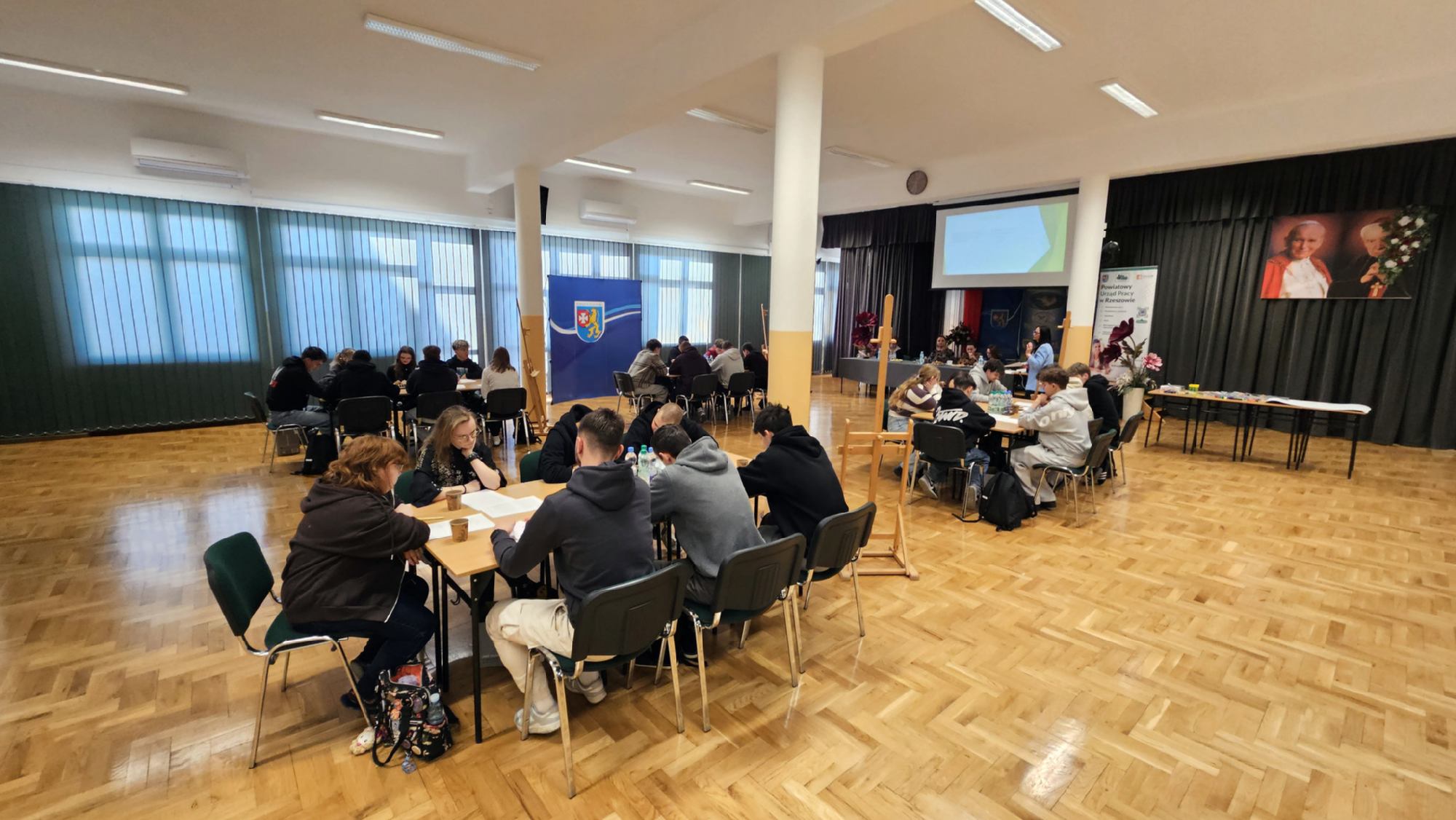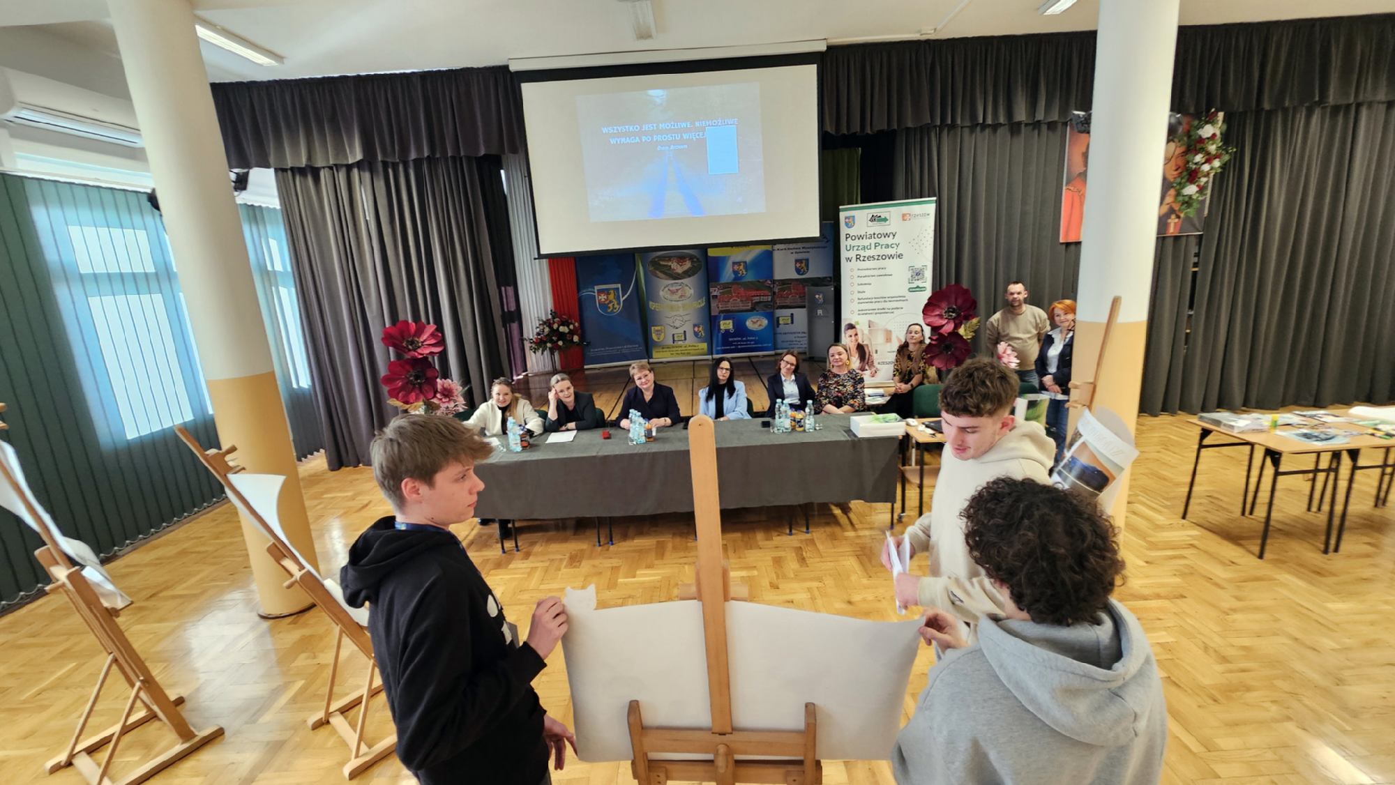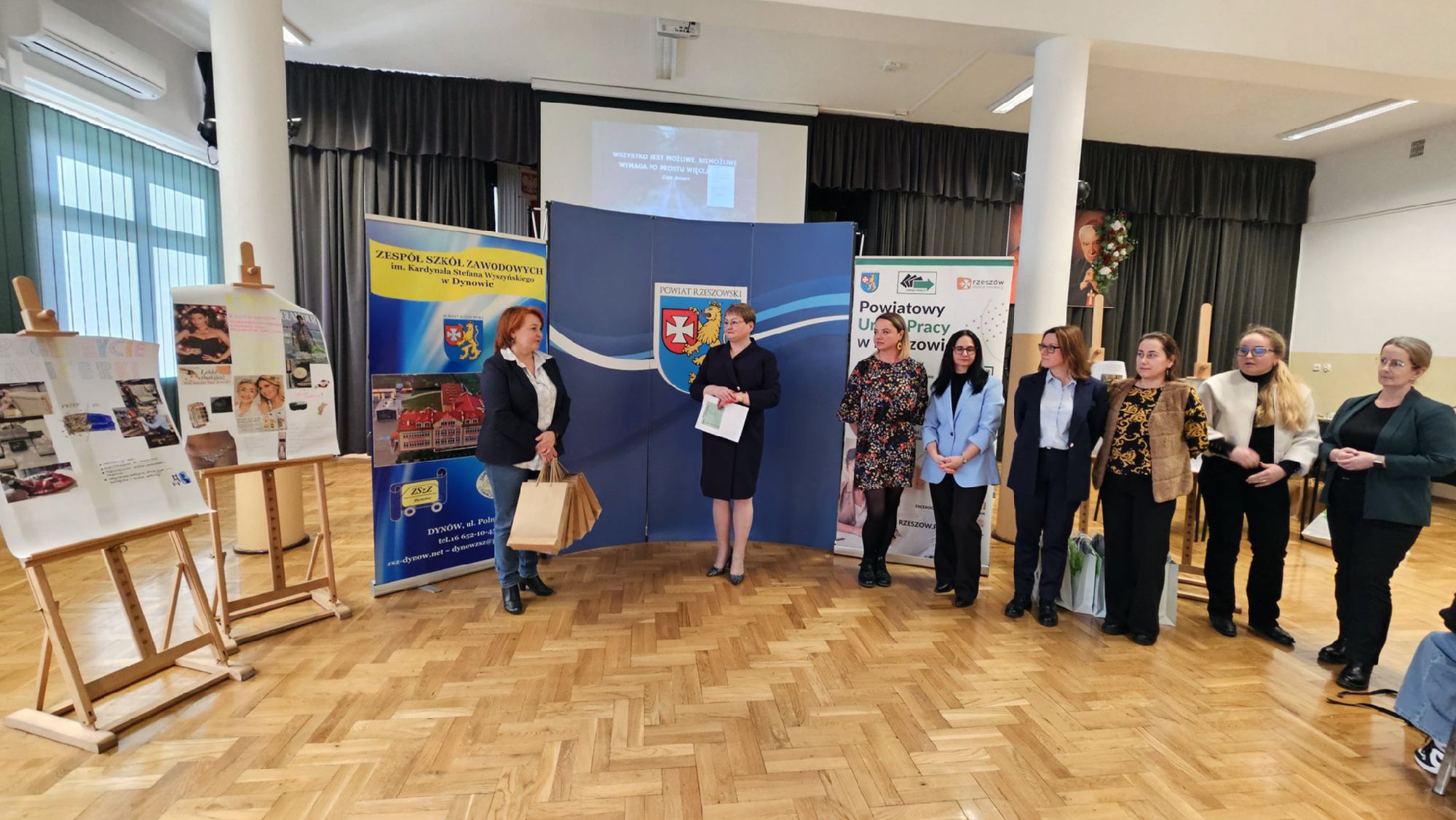 W dniu 19 stycznia 2026 roku w Zespole Szkół Zawodowych im. Kardynała Stefana Wyszyńskiego w Dynowie odbyły się „Warsztaty przedsiębiorczości”, zorganizowane we współpracy z Powiatowym Urzędem Pracy w Rzeszowie. Wydarzenie skierowane było do uczniów klas piątych 5- letniego technikum: kl. 5TPS (technik pojazdów samochodowych), kl. 5THL (technik logistyk/technik handlowiec), kl. 5TI (technik informatyk) oraz do uczniów klasy 3a branżowej szkoły I stopnia. Celem spotkania było kształtowanie postaw przedsiębiorczych, rozwijanie kreatywności oraz przygotowanie młodzieży do świadomego planowania swojej przyszłości zawodowej i funkcjonowania na rynku pracy. Uczniowie mieli możliwość poznania procedury ubiegania się o dotacje na otwarcie jednoosobowej działalności gospodarczej oraz ćwiczenia praktycznych umiejętności sporządzania biznesplanów niezbędnych do uzyskania takiego dofinansowania. Uroczystego otwarcia warsztatów dokonała Pani Halina Cygan, dyrektor szkoły oraz Pani Beata Madera, kierownik Wydziału Instrumentów Rynku Pracy i Projektów Powiatowego Urzędu Pracy w Rzeszowie, które powitały uczestników, akcentując istotę kształtowania postaw przedsiębiorczych oraz rozwijania samodzielności zawodowej wśród młodzieży.