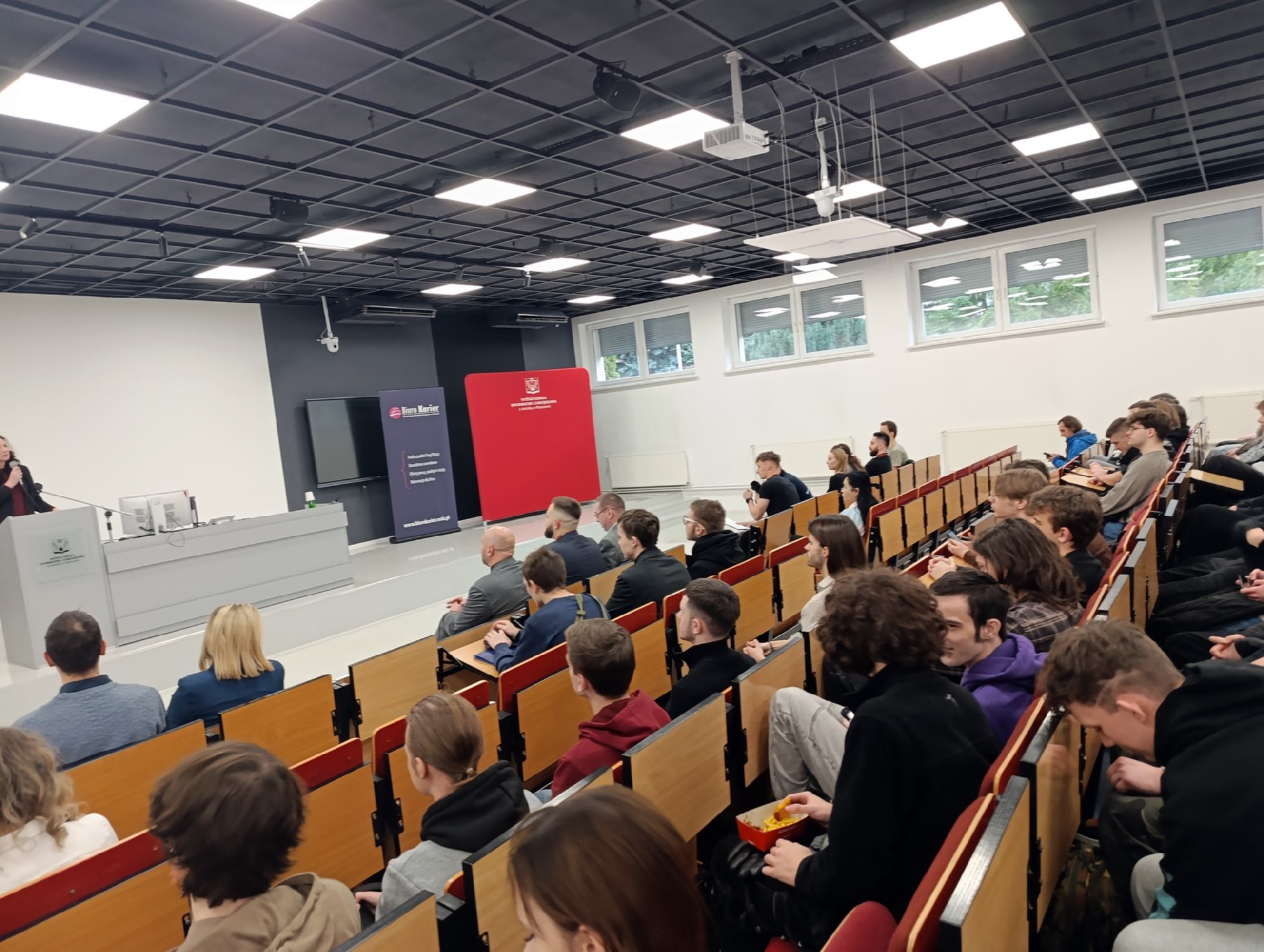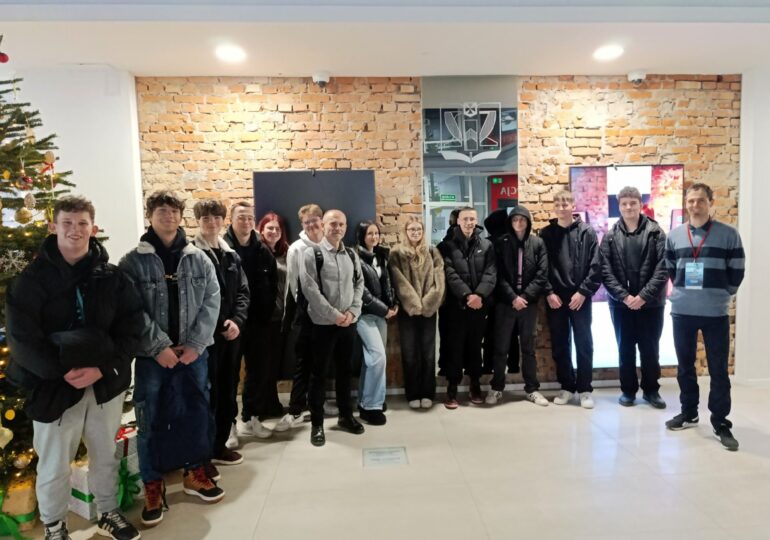 W dniu 9 grudnia 2025 r. uczniowie klasy 3TI i 4TI (5 – letnie technikum w zawodzie technik informatyk uczestniczyli w wydarzeniu „Dzień Kariery IT – IT Career Day”, zorganizowanym w siedzibie głównej Wyższej Szkoły Informatyki i Zarządzania w Rzeszowie (ul. Sucharskiego 2), w ramach projektu „Klasy Patronackie”. Projekt „Klasy Patronackie”, realizowany we współpracy z Wyższą Szkołą Informatyki i Zarządzania w Rzeszowie od 2014 roku, ma na celu wspieranie rozwoju uczniów szkół ponadpodstawowych poprzez bezpośredni kontakt ze środowiskiem akademickim i branżą IT. Dzięki takim zajęciom uczniowie mogą poznać nowoczesne narzędzia dydaktyczne, technologie informatyczne oraz praktyczne zastosowania wiedzy zdobywanej na lekcjach. Tematem przewodnim wydarzenia są możliwości rozwoju zawodowego w branży informatycznej oraz planowanie ścieżki kariery w sektorze nowych technologii. „Dzień Kariery IT” organizowany jest przez Kolegium Informatyki Stosowanej, Biuro Karier oraz Klub Absolwenta WSIiZ w Rzeszowie i jest skierowany zarówno do studentów, jak i uczniów szkół ponadpodstawowych zainteresowanych nowoczesnymi technologiami i rynkiem pracy w IT.W ramach wydarzenia zaplanowano cykl prelekcji w auli im. prof. Jerzego Chłopeckiego, podczas których przedstawiciele firm z branży IT omówili m.in.: